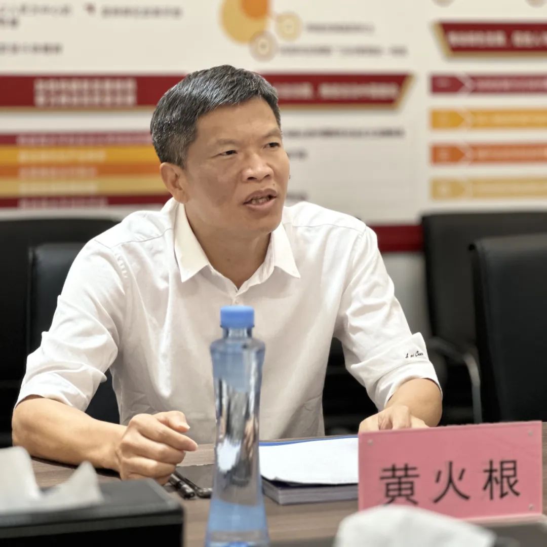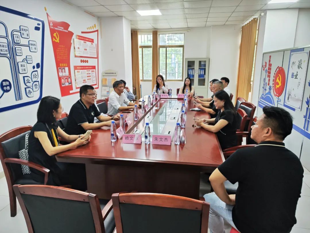 在广东鼎发投资有限公司会议室,建筑装饰专委会顾问、南沙区新生代企业家商会名誉会长、中鼎集团广东鼎发投资有限公司董事长袁发明和新生代企业家商会党支部书记曹宝善、执行会长官志华等向黄火根一行表示热烈欢迎。