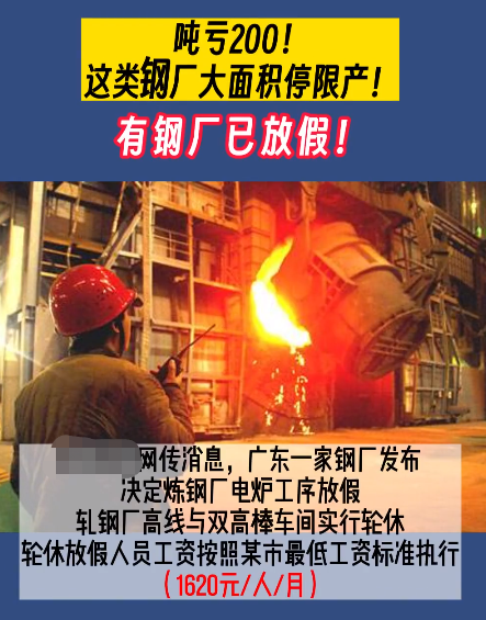 有些钢厂已经放假,炼钢厂电炉工序放假,轧钢厂高线与双高棒车间实行轮休,