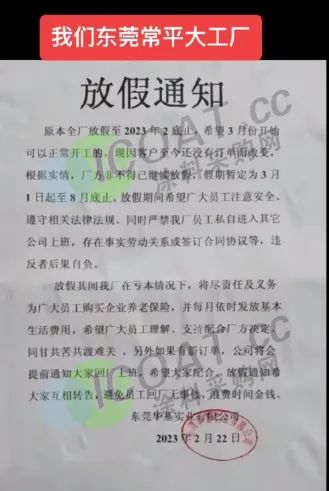 原本全厂放假至2023年2月底,希望3月份开始可以正常开工,现因客户至今还没有订单而改变。根据事情,厂方非不得已继续放假,