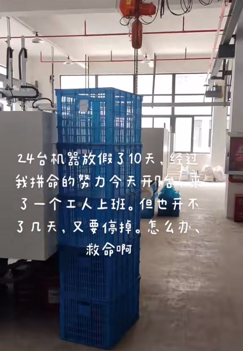 浙江余姚某塑业工厂表示,厂里没活都放假了,愁死人,上哪去找订单呢?