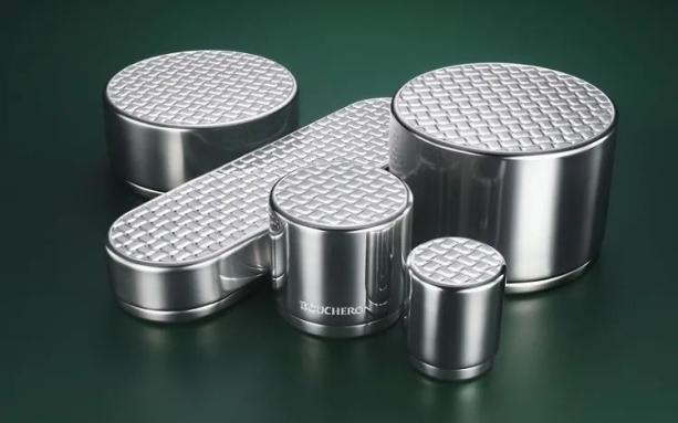 近日,宝诗龙(Boucheron)推出了环保材质珠宝盒,其造型灵感来自20世纪80年代美妆套盒,盒盖饰以祖母绿型切割纹理,如同俯瞰视角下的旺多姆广场,材质采用可循环利用的铝金属,突出了品牌绿色环保的设计理念。