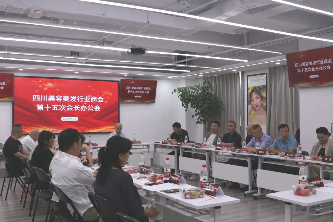 2023年8月23日下午,四川美容美发行业商会(以下简称“四川商会”)第六届理事会第十五次会长办公会在成都靓彩名都商贸有限公司召开。