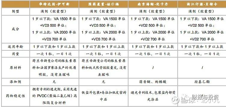 西南证券曾比较过维生素AD制剂原材料和添加剂的情况,星鲨和达因的产品用的是D3,其吸收率和保存便利性强于D2;并且儿童用药辅料表越干净越好,星鲨和达因的产品均没有添加剂,海鲸用了香料,浙江仟源用了防腐剂。