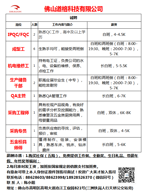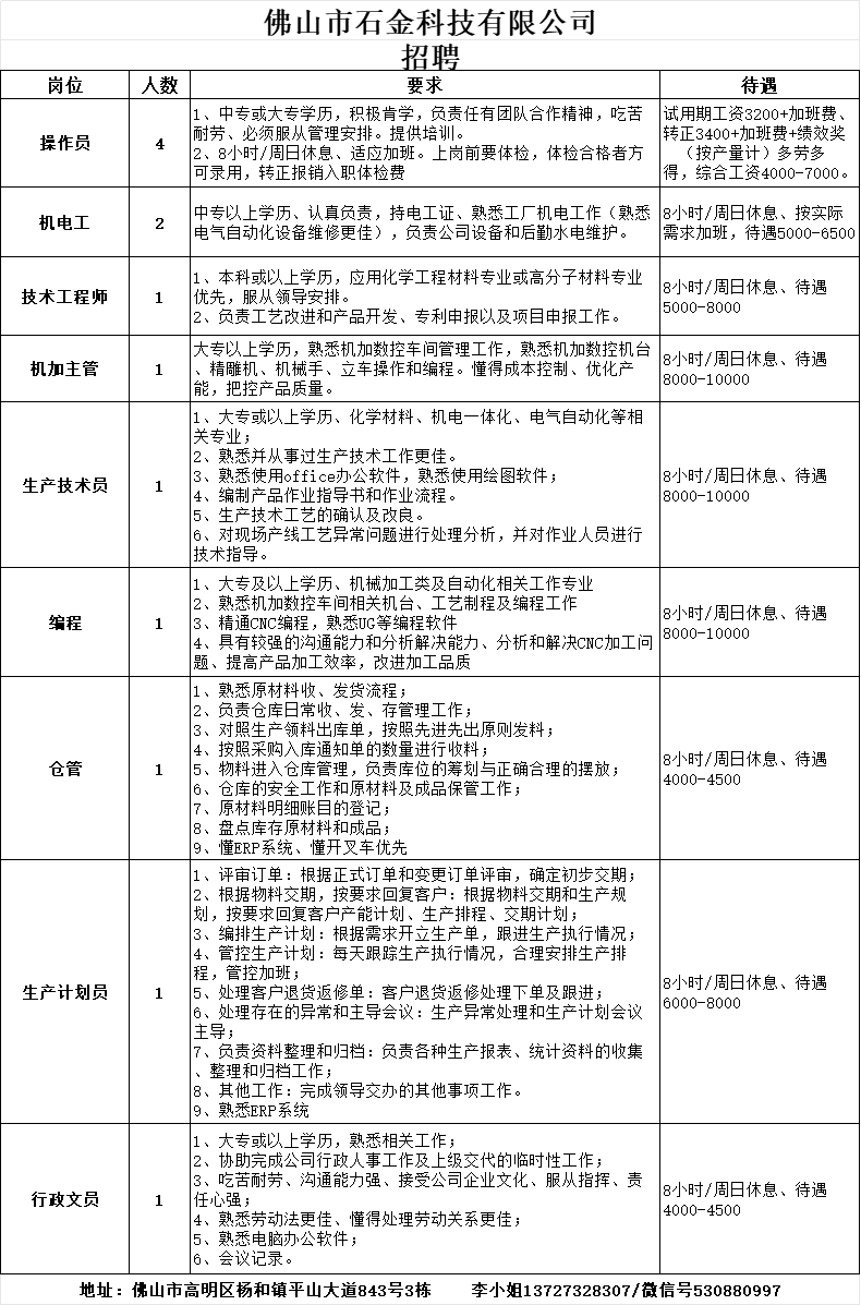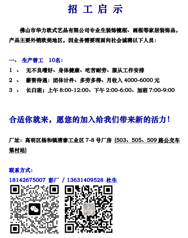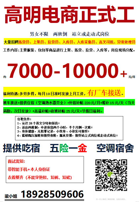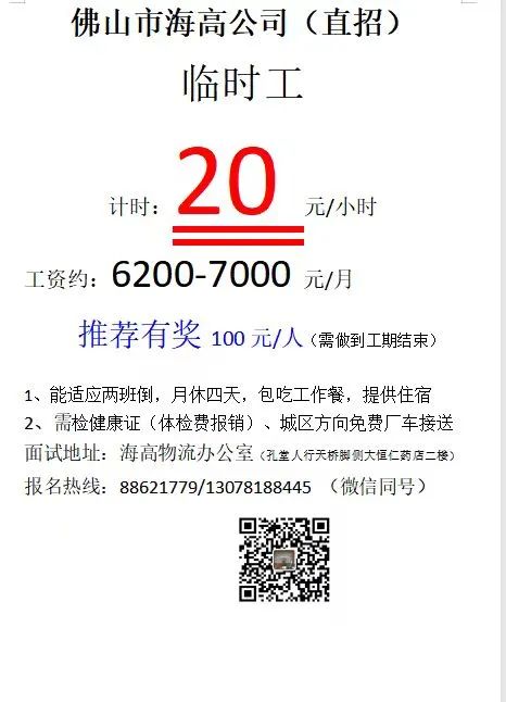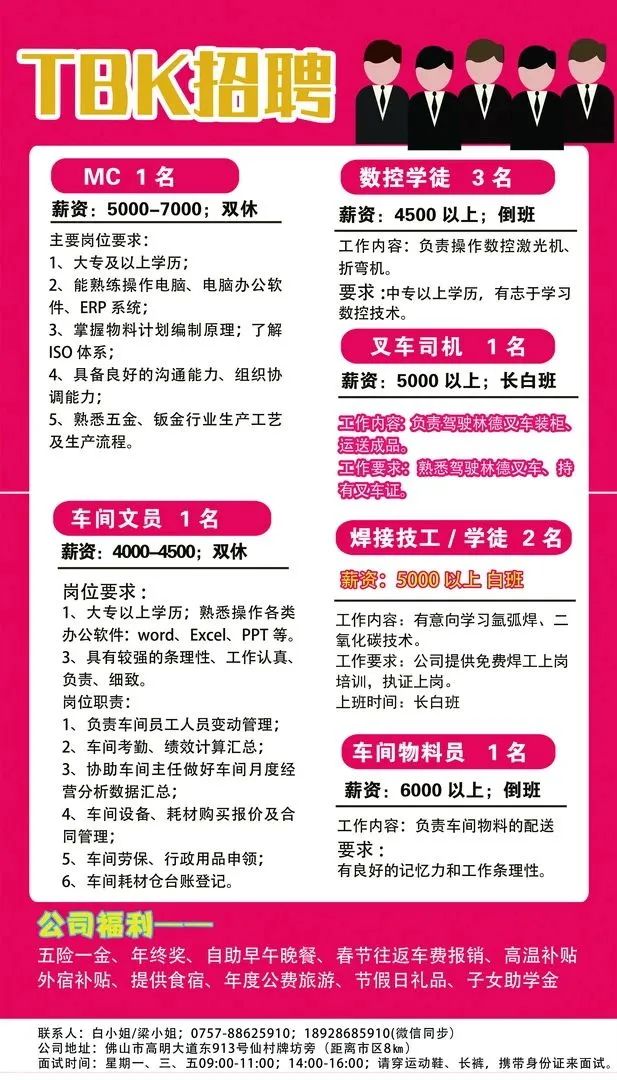 以上岗位包食宿,其他详细内容欢迎电话了解。