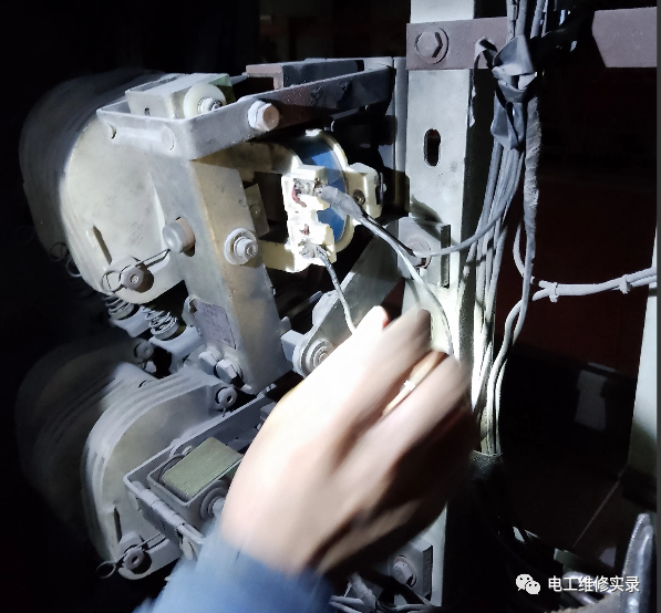 随后,打开配电柜,检查上升主接触器线圈,发现有三个切电阻的线圈,接线端子处断裂,造成无法正常切除电阻,表现出的主钩上升无力,或者是哼哼响!