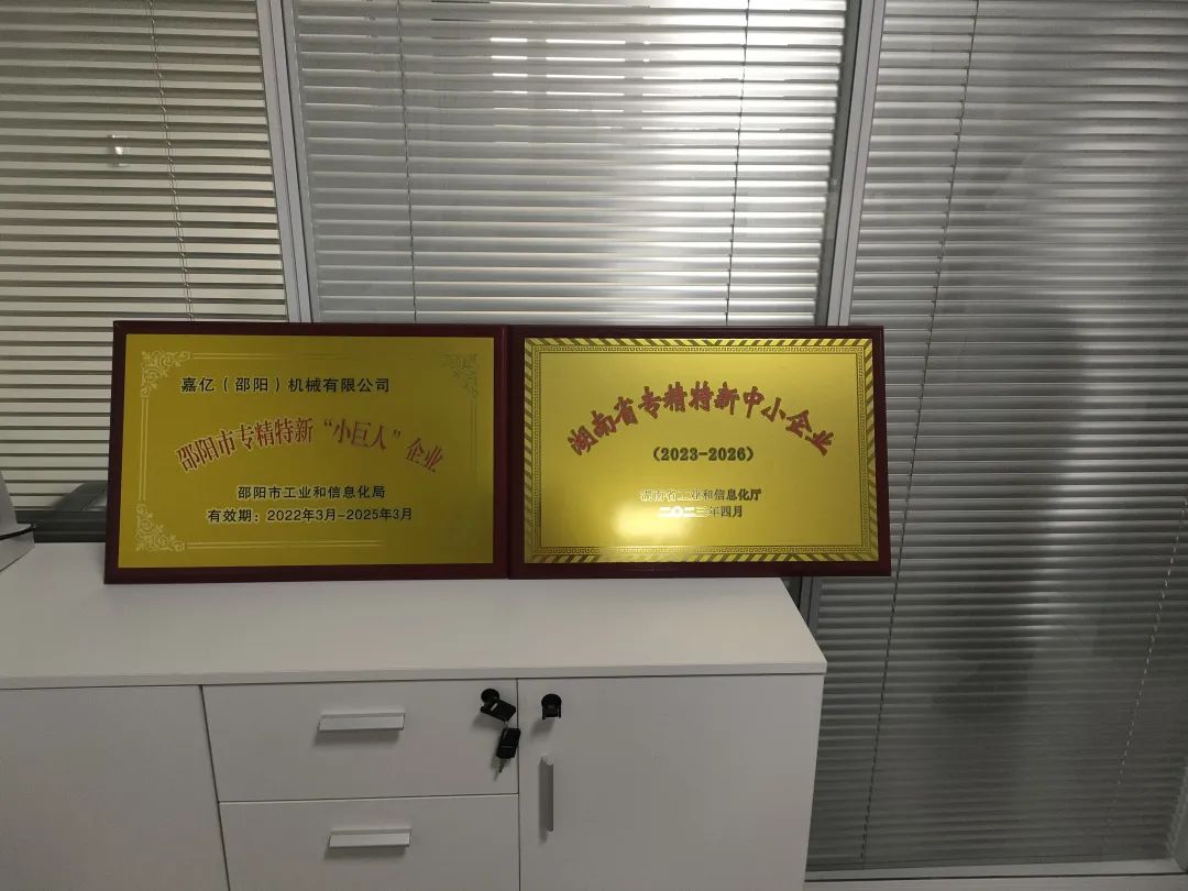 得益于卓越的研发创新能力、精密制造能力,嘉亿(邵阳)机械有限公司通过层层筛选,于近日成功获评湖南省专精特新中小企业、邵阳市专精特新“小巨人”企业,在高质量发展的道路上迈出了又一坚实步伐。