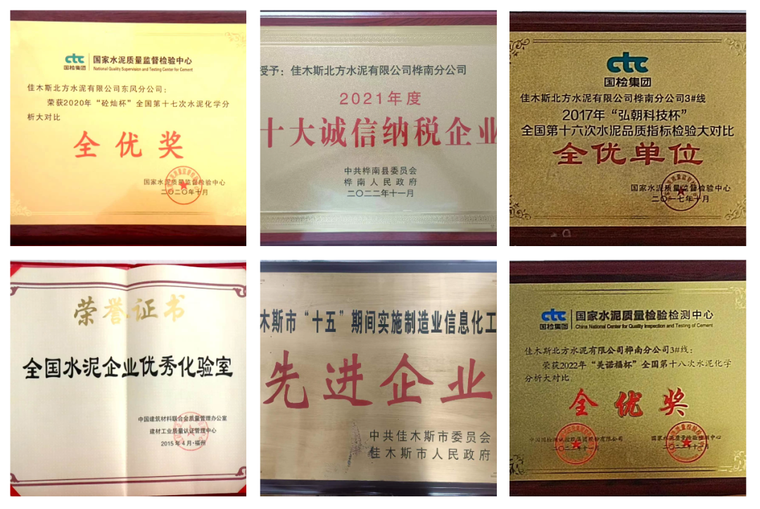 佳木斯北方水泥有限公司自2009年9月成立以来,先后获得了“全国就业先进企业”、“黑龙江省名牌企业”、“黑龙江省质量管理奖”、“黑龙江省效益型企业”、“国家权威产品检测达标企业”、“重合同守信用”等诸多国家、省、市级殊荣。
