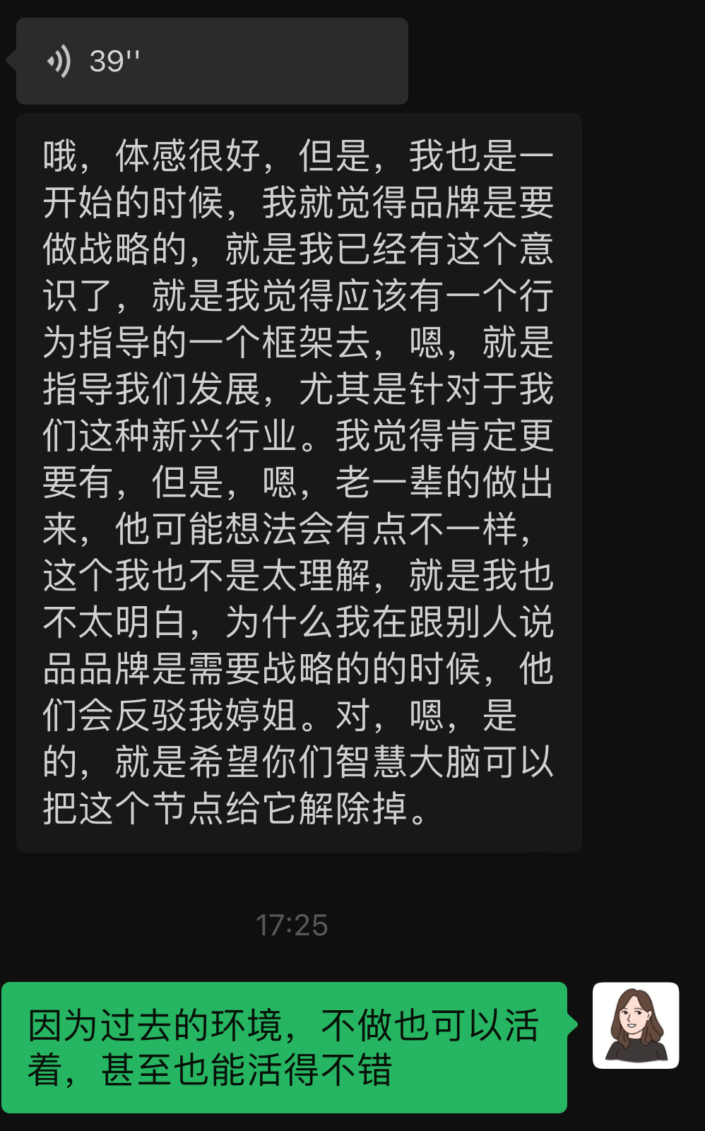 机缘巧合,创始人找到了我,给他们的品牌做一个诊断和升级。我和项目组亲自访谈了他们的企业高管,梳理了他们的品牌基因,又研究了社会的潮流特征,找出可以借势的消费趋势,最后深度访谈消费者,从中找出直击人心的洞察。
