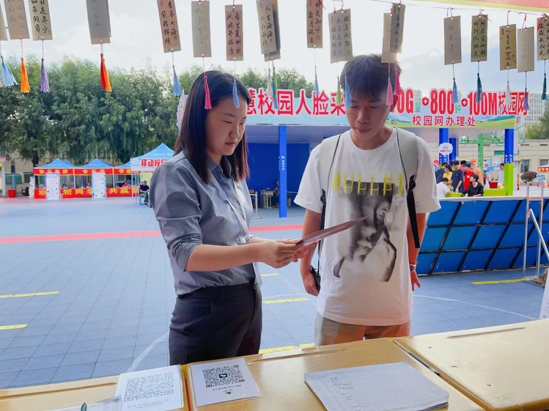学校领导莅临新生报到现场时,与师生们交流互动,一声声亲切的关怀与问候,温暖了现场每一位师生的心田,在学校领导的关心与指导下,迎新工作井然有序地进行。