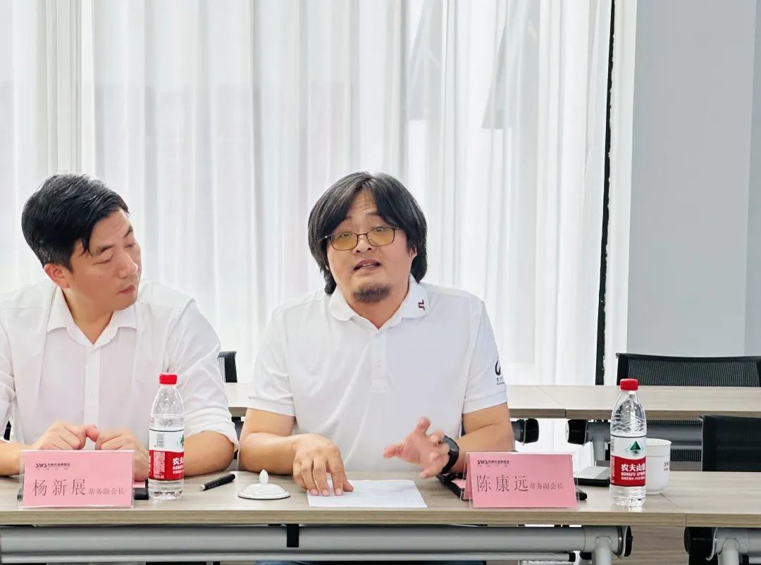 新生代会长徐忠强汇报商会新生代7-8月活动开展情况,并提出后期新生代将增加会企走访频率,更深入地了解会员单位实际情况。