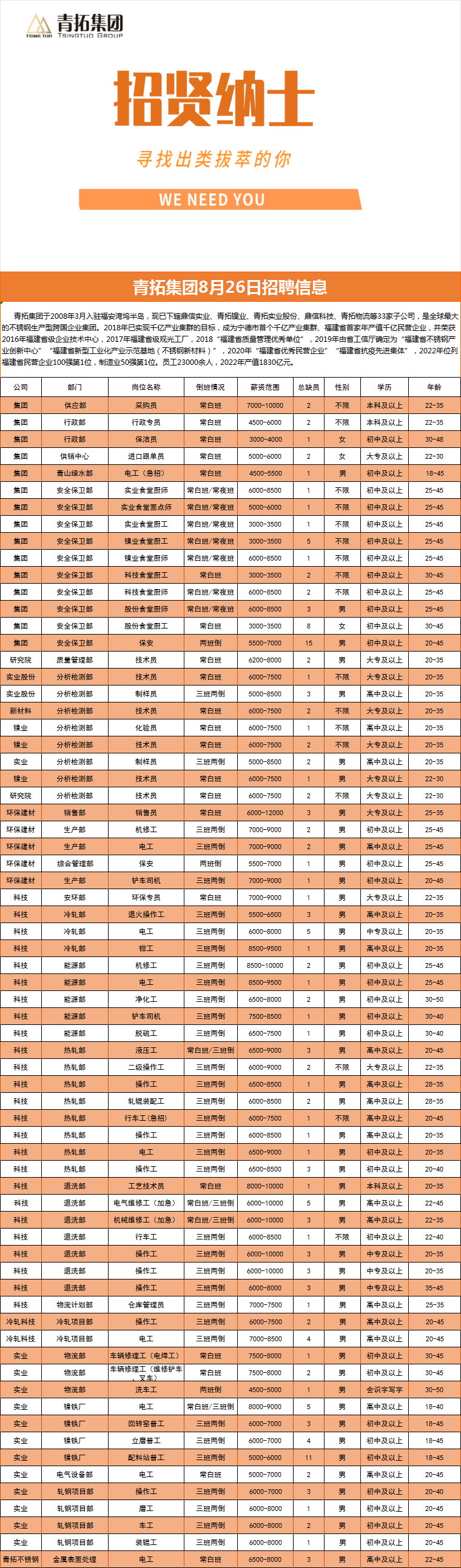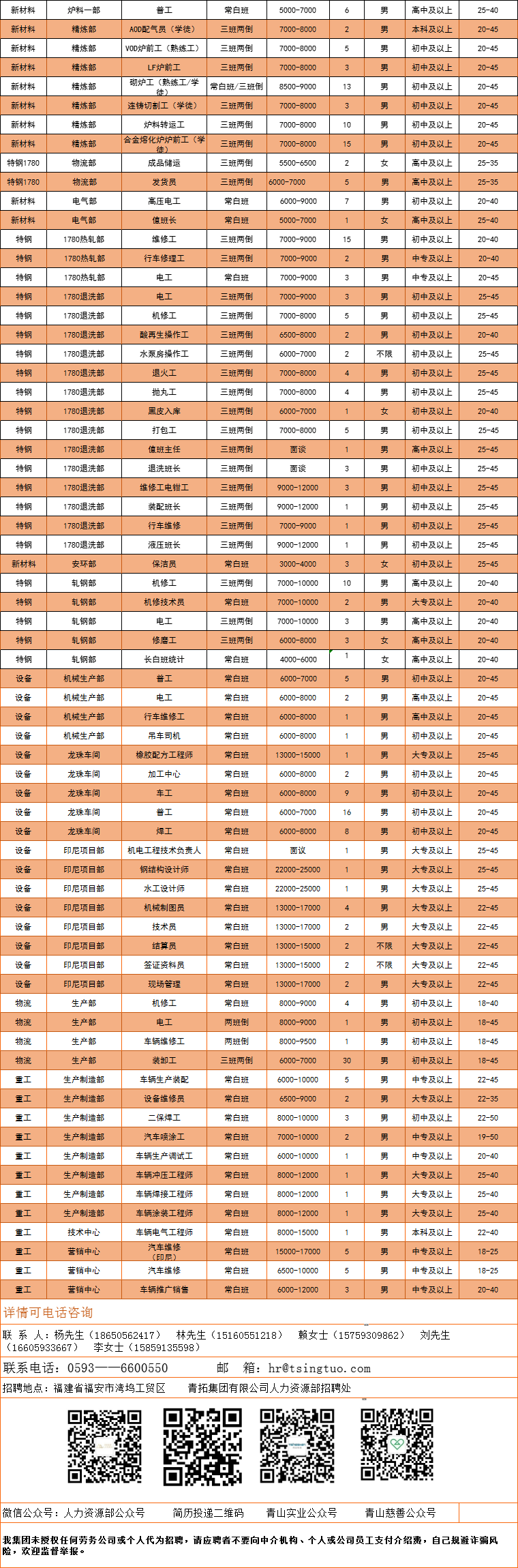 1、省内外职业院校毕业年度在校生:按照职业院校专业技能培养目标要求和教学计划安排,组织毕业年度在校生到青拓实习3个月以上(含3个月),连续3个月给予每人300元/月的实习补助。