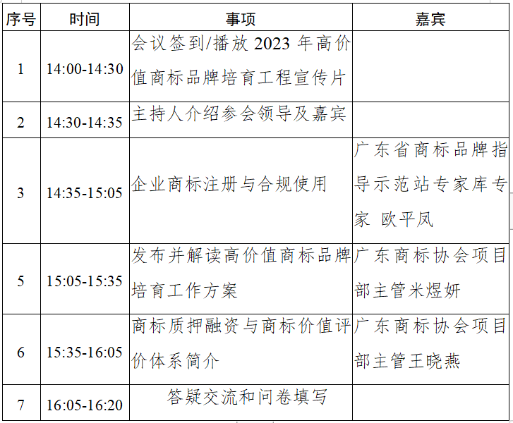 为贯彻落实《广东省培育扶持个体工商户若干措施》关于加大对个体工商户的服务供给和拓展个体工商户发展空间的工作部署,深入了解广东个体工商户和私营企业在商标保护、品牌管理、培育运用等方面的现状,精准对接广东个体工商户以及私营企业商标品牌需求,为广东个体私营企业提供更全面高效的商标品牌辅导服务,推动提升我省个体工商户以及私营企业的商标品牌建设及运用能力,促进商标品牌经济高质量发展。广州商标审查协作中心(广东省知识产权开发与服务中心)拟举办“强化商标品牌培育运用,助力区域经济高质量发展”主题活动,具体通知如下:主办单位:广州商标审查协作中心(广东省知识产权开发与服务中心)地点:江门市鹤山沙坪街道鹤山大道623号东古玥湖酒店鼎湖厅线下举办与线上直播相结合