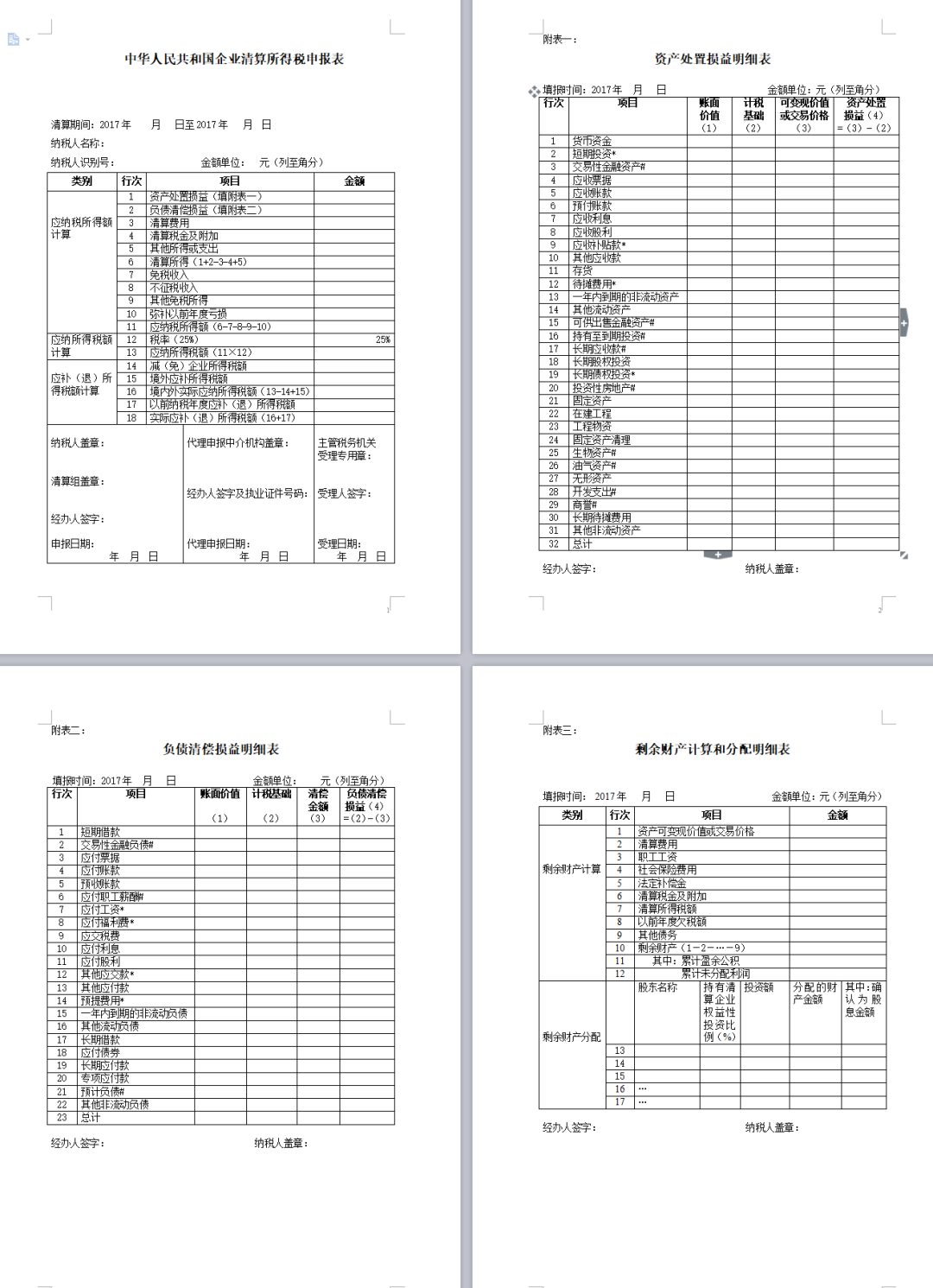 企业所得税清算申报表(注销使用):