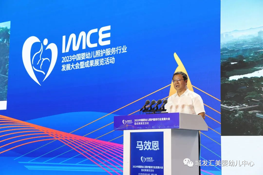 8月24日,以“科学育儿 照护未来”为主题的2023中国婴幼儿照护服务行业发展大会暨成果展览活动在山东省济南市举行。第十届、十一届全国政协副主席、中国妇幼保健协会终身荣誉会长张梅颖,第十四届全国政协委员、中华慈善总会党委书记孙达,国家教育部原副部长、国家总督学顾问张天保,国家卫生健康委人口监测与家庭发展司司长杨文庄,国家卫生健康委人口文化发展中心主任张建兵,中建八局第二建设有限公司副总经理、大会组委会组长杜智慧等分别在大会上致辞。济南市卫生健康委党组书记、主任马效恩为大会作精彩主题发言。