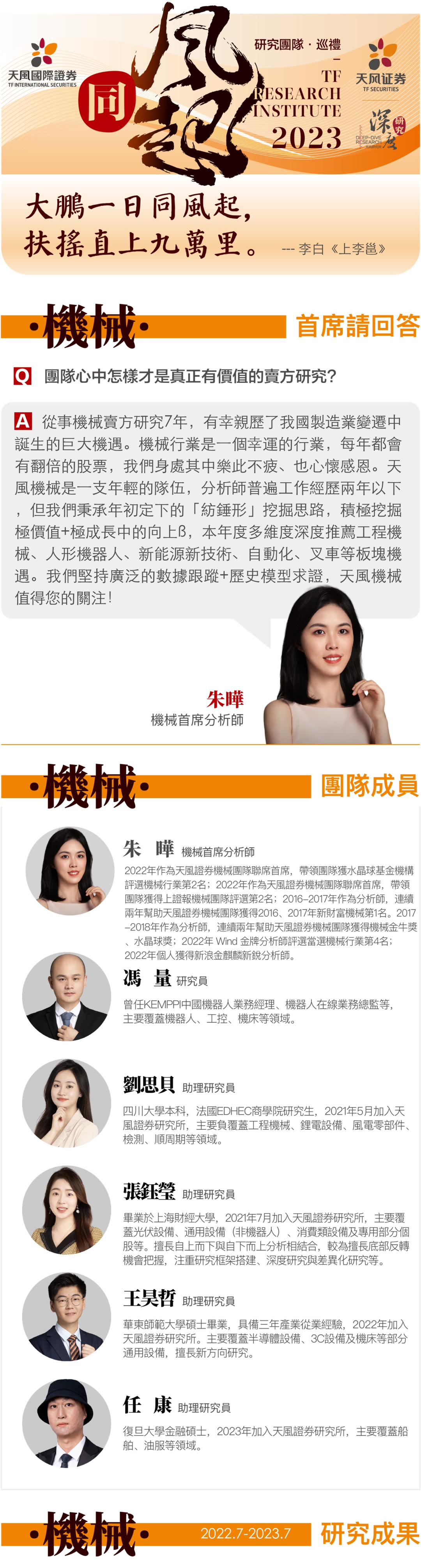 2022年7月至2023年7月,發佈研報189篇,其中深度及專題研報46篇,深度路演3246場,電話會議253場。