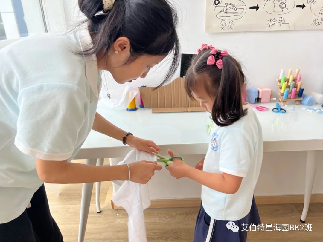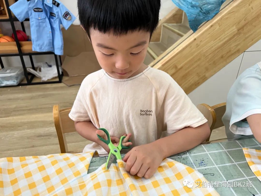 在服装裁剪与制作的过程中孩子们需要亲自动手,这会让孩子们在实操的过程中锻炼了手部的协调能力和动手能力