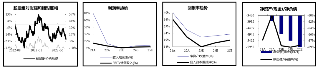 周转情况:公司2023年上半年期末存货、应收账款和应付账款的周转天数分别为151.34、45.76和150.45天,同比+6.78、+1.57和+12.39天,存货周转有所放缓,预计与整体消费恢复速度较慢有关。