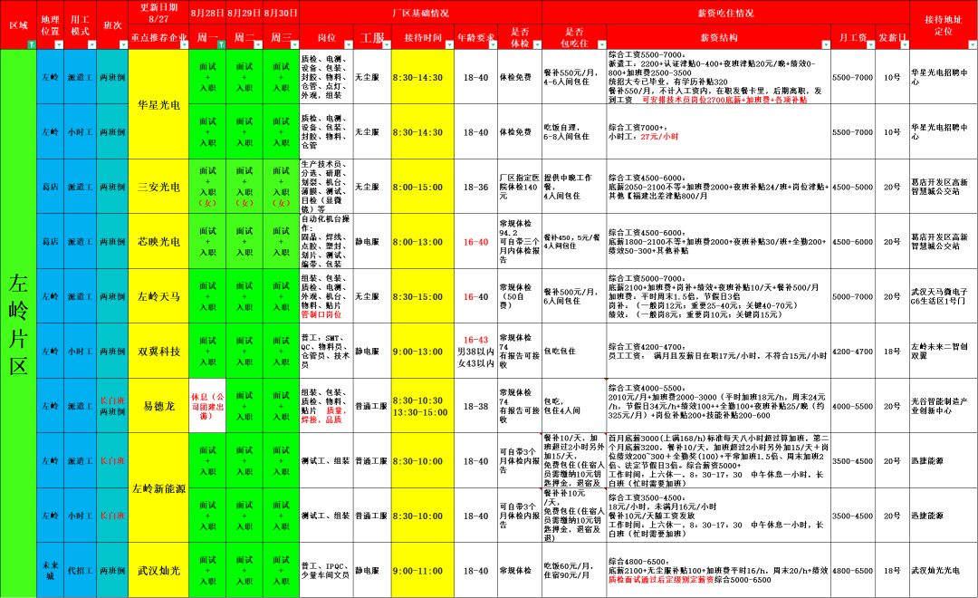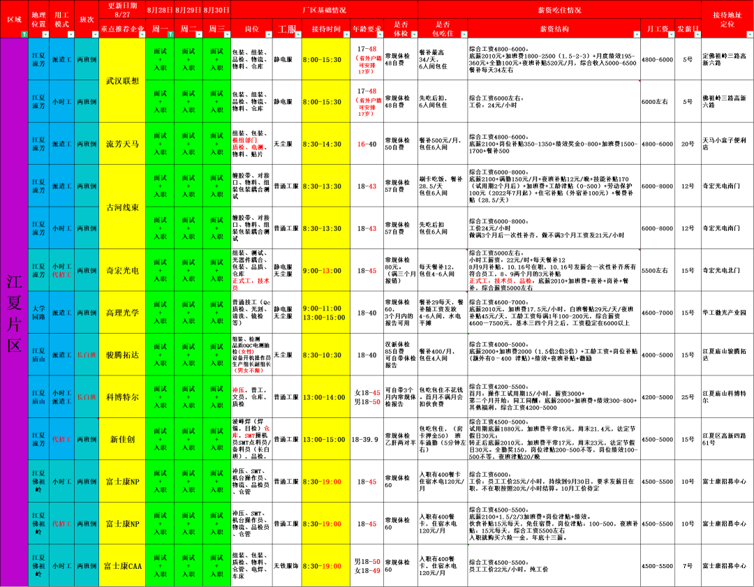 8月28日(周一)企业招聘安排