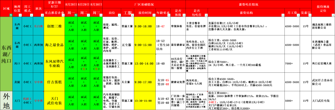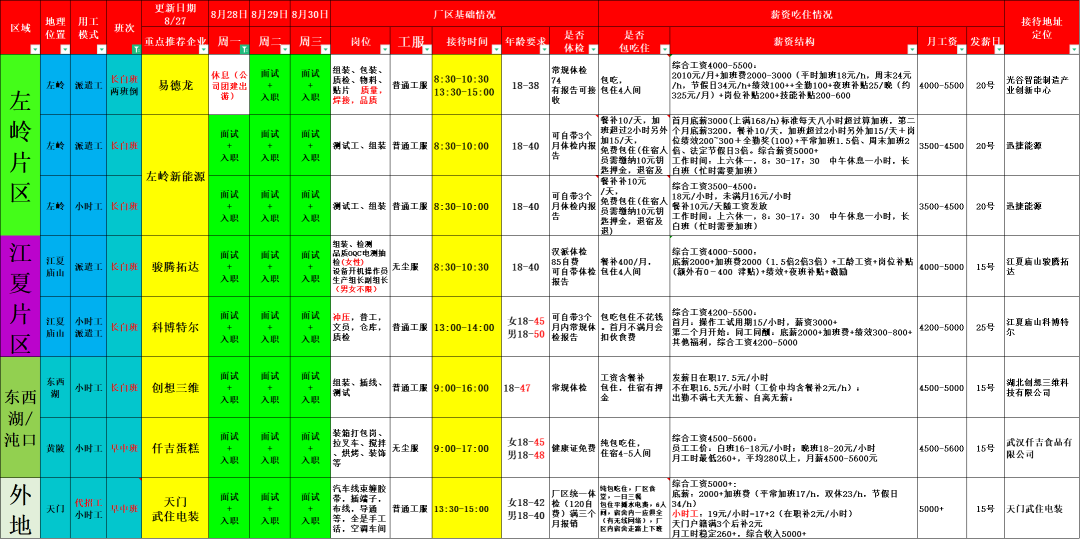 18-52,大龄工企业,东西湖厂区,完全包吃住,白班167元/天,晚班172元/天