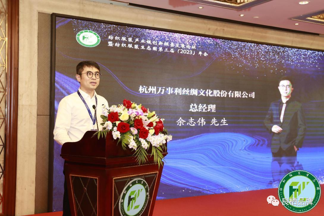 8月27日下午13:30,一场由纺织服装生态圈主办的“纺织服装产业链创新探索发展论坛暨第三届纺织服装生态圈(2023)年会”在上海市闵行区绿瘦酒店三楼富锦荟成功举办。该届论坛在中国服装设计师协会、上海服装行业协会的指导下,由上海良栖品牌管理有限公司承办,自2020年首届论坛开始,已经举行了3次。纺织服装生态圈由深耕纺织服装行业多年并历任各主要服装品牌高管的程伟雄先生发起,汇集鞋服行业上市公司品牌创始人及高管等顶流大咖、专业人士及产业链相关企业,旨在为广大鞋服企业创业(从业)者提供一个交流心得、探讨创意、寻求出路、共谋发展的平台,推动行业发展。程伟雄先生在开场致辞中说道:当前,国际环境复杂多变、风高浪急,我国发展进入战略机遇和风险挑战并存、不确定难预料因素增多的敏感时期。在经济发展面临需求收缩、供给冲击、预期转弱等多重压力下,纺织服装产业形势迷雾重重、成长钝化、内卷严重。召集鞋服行业圈内专业人士和产业链相关品牌与企业,从品牌、供应链、数字化、国际化等方面出发,围绕如何在迷雾中寻找微光,在迷茫中开启新路,共谋创新探索发展之道,推动行业发展是本次论坛的初衷。同时,程伟雄介绍到:该论坛被行业人士纷纷誉为鞋服行业的“博鳌论坛”。包括本届已连续举办三届,为纺织服装产业链在中国市场的发展起到市场补充作用,每届论坛的举办都安排在中国国际服装服饰秋季博览会前一天举办,期待在博览会之前先在行业内部形成思想启发与碰撞,在宏观与微观之中去寻求平衡。与来自全国各地近200名的企业家和国际友人共同分享与探讨行业之发展、市场之发展、企业与品牌转型、企业与品牌业绩倍增策略等课题,在不确定的市场迷茫之中寻求亮光指引。杭州万事利丝绸文化股份有限公司总经理余志伟先生、上海服装行业协会秘书长沈群先生、中国纺织品商业协会家纺家居委员会会长刘雁飞先生分别致辞发言。论坛上晨风集团创始人尹国新先生、沙涓艺术羊绒品牌创始人郭秀玲女士、猫人科技内衣品牌创始人游林先生、三夫户外创始人张恒先生、波司登国际控股集团有限公司副总裁王晨华先生、丽迅物流总经理袁明春先生、伯俊科技创始人孙一晖先生、新潮传媒联合创始人梁春华先生分别做主题演讲,分享各自企业的成功经验和创意。猫人创始人游林先生做“《科技猫人百亿蝶变》之变与不变”主题演讲。从猫人品牌2次生死起伏的发展经历作为切入点,阐述了企业使命、理想,并以自我革命的态度重新明确猫人科技内衣专家的定位的历程分享了如何实现百亿规模的秘密,并提出企业未来的千亿目标。沙涓艺术羊绒品牌创始人郭秀玲女士以匠心、可持续发展 、本真为关键词,做“中国品牌国际化路径”主题演讲,为与会嘉宾分享Sand River(沙涓)羊绒品牌从中国走向世界的故事。郭秀玲女士分享时提到,Sand River沙涓品牌从小处着手,以羊绒为基本材料,以工匠精神为本,深挖传统手工艺,重塑中国传统文化自信,从最早的品牌代加工到创立自有品牌,做成隐形冠军,走向世界,并入选商业案例,成为中国廉价产品的终结者。丽迅物流总经理袁明春先生从”柔、准、快“为关键词解析服装品牌从工厂端到门店端一体化库存解决方案,做“在不确定性市场现状下国内鞋服库存痛点商流与物流解决策略”主题演讲。袁明春先生指出:柔主要是柔性供应链,准在于做好产品的补货和生产预测,快在于借助科技赋能和数字化对畅销款、常青款进行快速反应,做到精准、少折腾,实现产品变现。晨风集团创始人尹国新先生做“供应链垂直一体化到市场端创新”主题演讲。尹国新先生分享了晨风集团从生产基地、面料研发设计、服装制版打样、品牌探索等多维度实现产业的集群发展,并从行业人才培养、绿色产业链建设和可持续发展等角度实现时尚可持续发展,给与会嘉宾以启发。伯俊科技创始人孙一晖先生做“从数字化应用与创新推动品牌企业的数字化改革赋能”主题演讲。孙一晖先生说到,伯俊科技24年专注为零售行业提供数字化服务,是一家有历史、有规模,既懂线上又懂线下的科技公司,为零售品牌企业从挖存量、探增量和数字化三个维度实现业绩可持续增长的赋能。三夫户外创始人董事长张恒先生创业经历、企业发展历史、业务布局、世界户外运动品牌发展历程及现状等维度做“户外运动品牌的江湖”主题演讲,并给与会嘉宾以新的认知和启发。新潮传媒联合创始人梁春华先生以“中国第一数字社区梯媒赋能品牌企业业绩倍增策略”做演讲主题。梁春华先生以外部视角审视服装行业的问题,以网络协同+数据智能重新定义电梯媒体,以 “晴天修屋顶”理论提醒企业注重品牌营销维护、实现品牌换新等角度分享了自己的观点,并提出中国服装消费正在从偏好产品向偏心品牌维度跃进。波司登国际控股集团有限公司副总裁王晨华先生做“以品牌引领高质量发展”主题演讲。王晨华先生指出经营品牌就是经营消费者的感觉,消费者的信赖是品牌最大的财富,创新是必须、是方向、是第一驱动力,以大数据驱动服装精准研发,优质柔性快反为工具,基于消费者心智升级传播内容是波司登品牌持续焕新的法宝。上海联合电子商务研究所执行所长、东华大学教授杨涛先生主持论坛第二