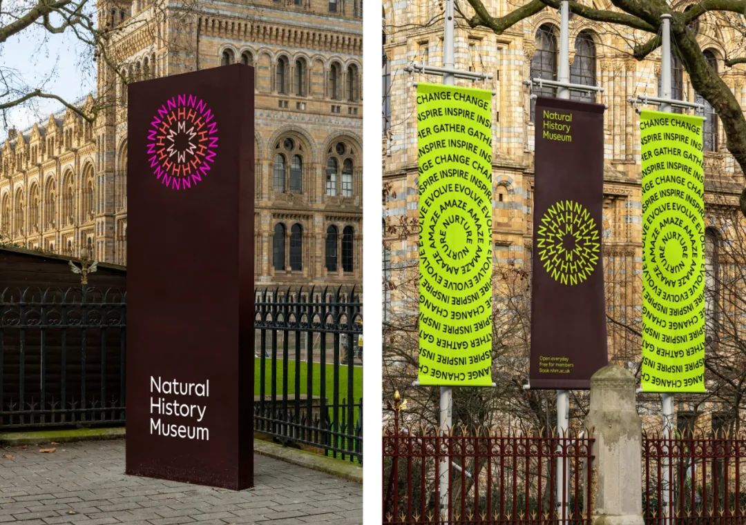 博物馆最近推出了一个新的品牌形象,由位于伦敦的工作室Nomad和Pentagram London合作设计。根据Pentagram的说法,品牌改造的初衷是因为虽然博物馆的收藏是一种无价的科学资源,但在即将迎来150周年庆典之际,它需要“重新确立自己在关于地球未来和气候紧急状况的讨论中作为主要科学声音的地位”。