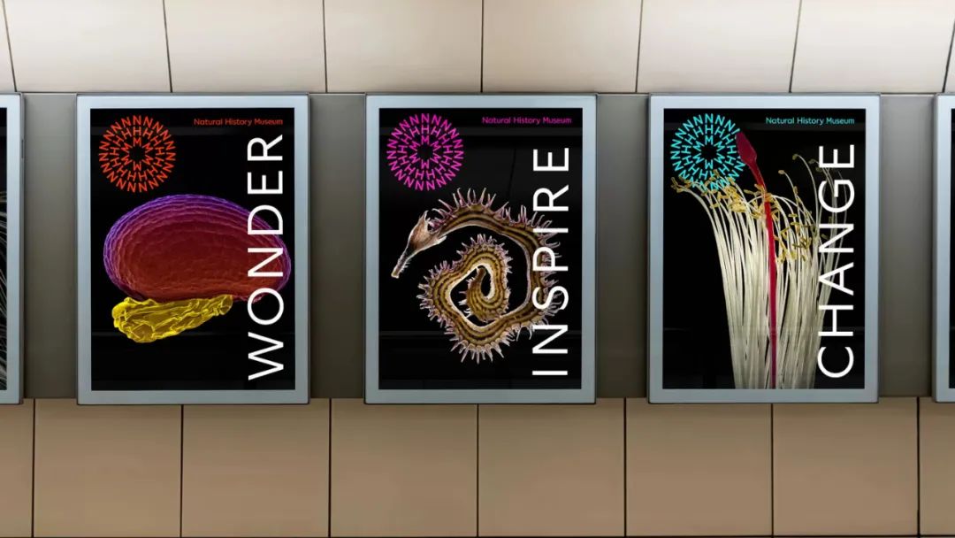 这个符号确实很时尚,特别是它鲜艳的、极现代的色彩组合,而且非常巧妙地可以在博物馆的所有场所使用:位于伦敦南肯辛顿的主要前哨站以及在赫特福德郡的特林和牛津郡的哈威尔的不太为人知的分馆。NHM这个缩写也可以通过不同的排列方式与完整的名称相结合,用于各个博物馆的不同位置和内容。虽然乍一看,霓虹灯和其他大胆色调的调色板似乎是追求即时时尚的表现,但根据Pentagram的说法,这些色彩旨在"反映自然界和生命的多样性,并邀请来自各种背景和起源的观众参与和享受其活动"。