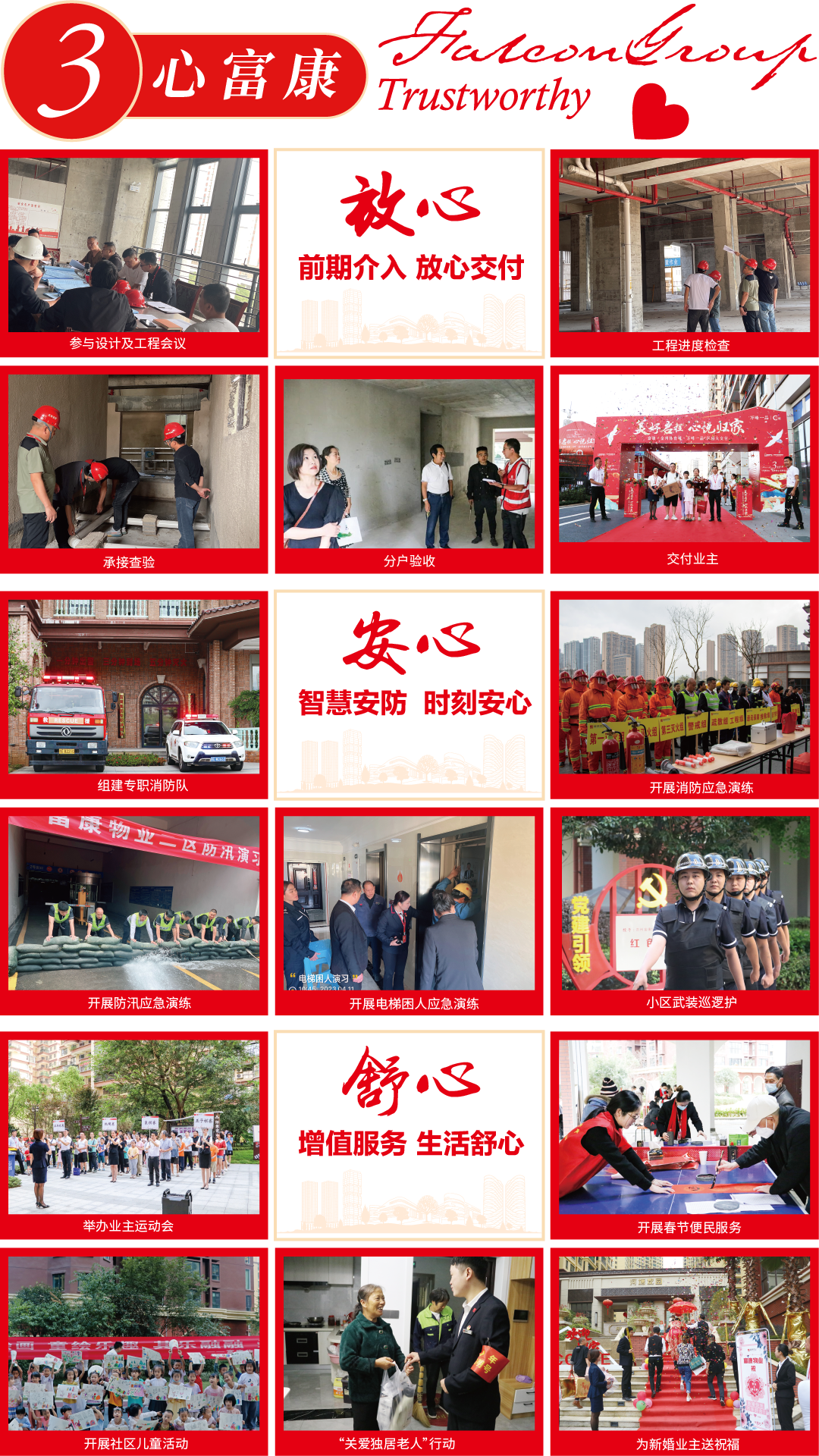 为了更好地实现广大人民群众对美好生活的向往,富康服务不断夯实高质量发展根基,致力于打造“买得放心”“品质安心”“住得舒心”的“三心”富康品牌。