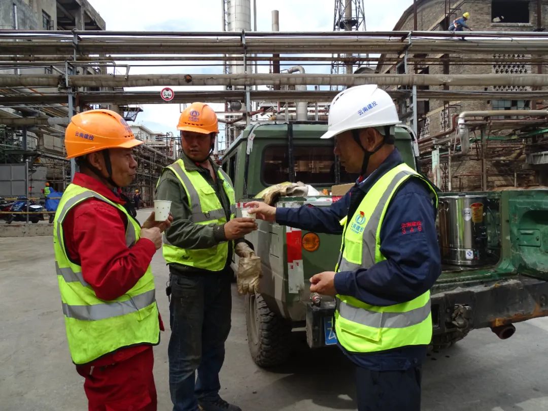 此次活动,党支部负责人带领党员职工为开远解化检修项目8个施工作业点职工送去了茶水、解暑饮料和一些防暑药品,并叮嘱现场施工人员做好安全防护措施,并注意防暑降温。