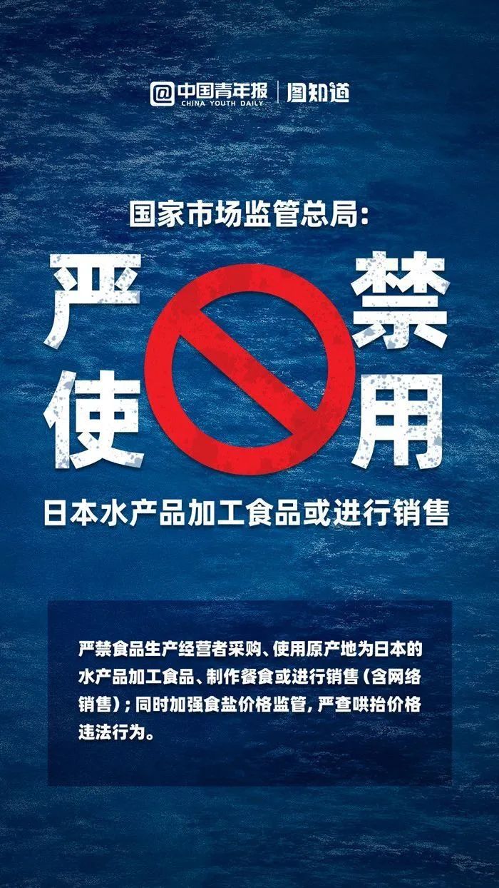 市场监管总局:严禁使用日本水产品加工食品或进行销售