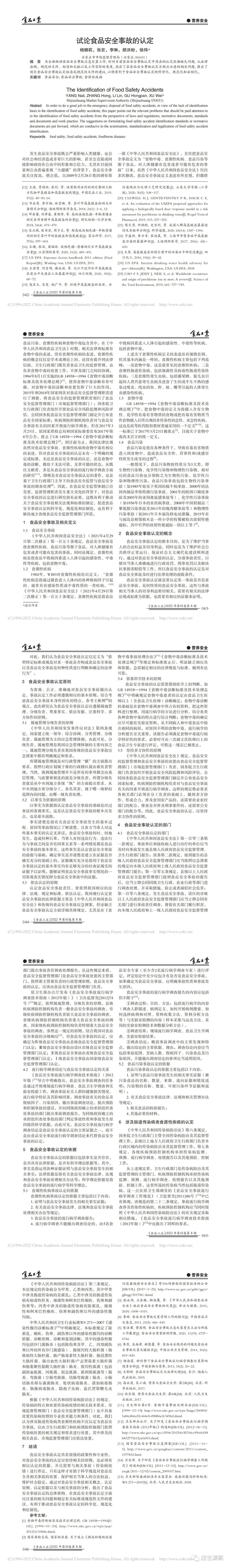 为了更好地理解上述问题,我推荐给大家一篇文章,题目是《试论食品安全事故的认定》,原载于《食品工业》2022年第43卷第8期,作者是杨娜莉、张宏、李琳、顾洪盼、徐玮(通信作者)。