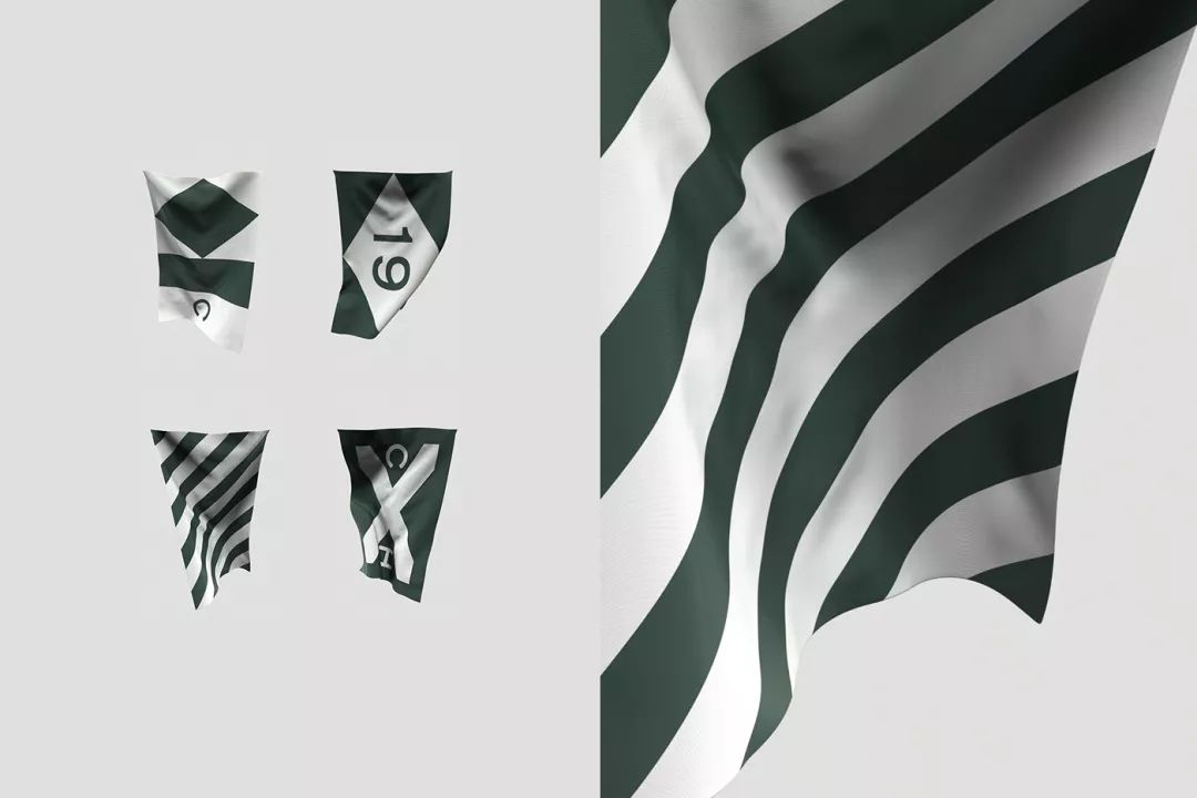 品牌使用矩形为主视觉,拼贴多种抽象辅助图形,以旗帜的展现方式,寓意着各个“团体、家族" 是品牌的核心。