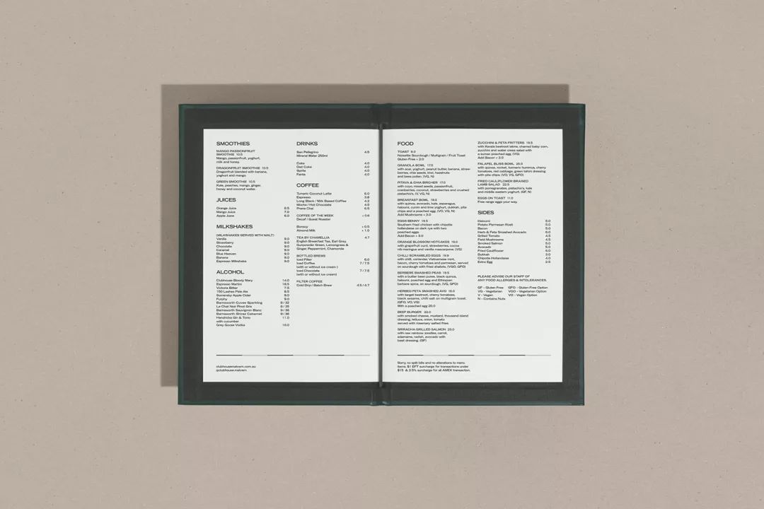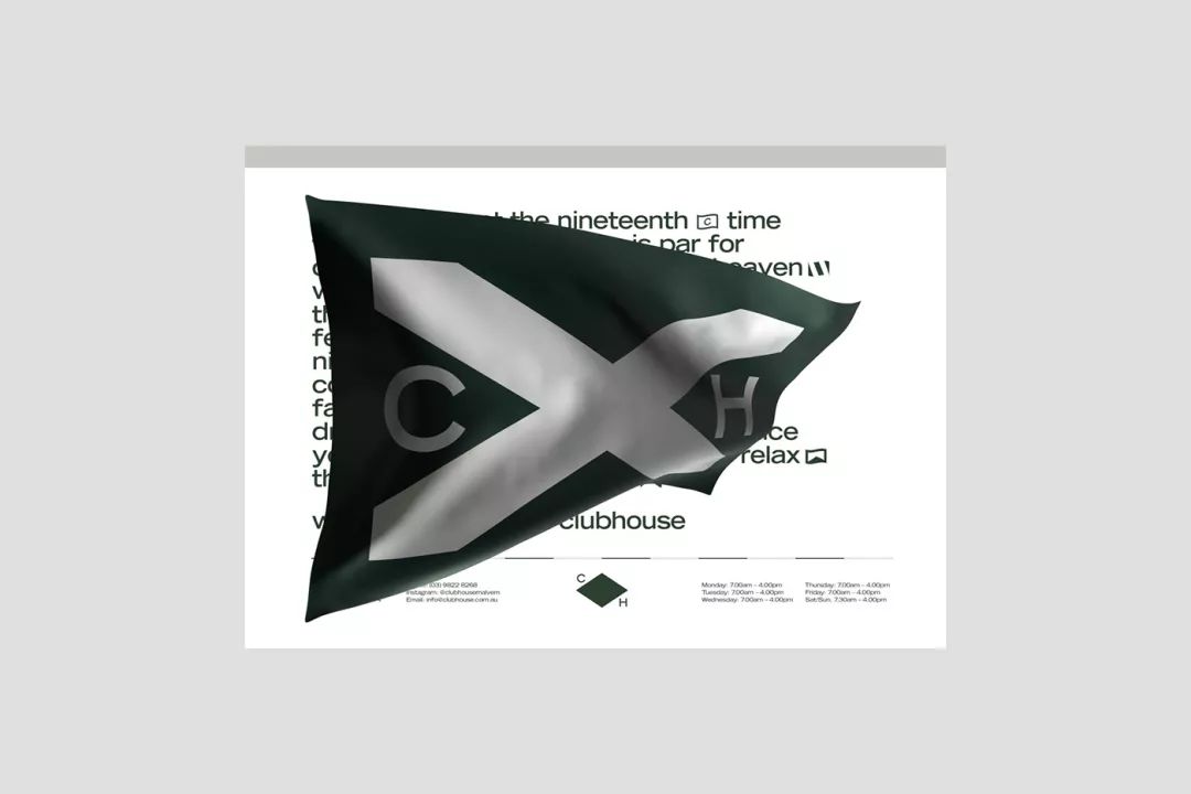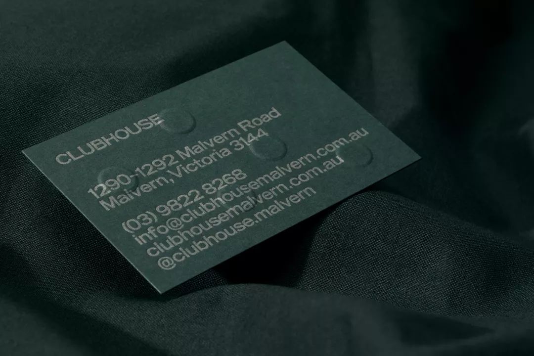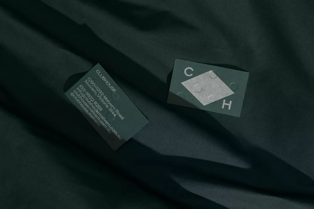 Clubhouse 是一家以聚会、休闲为特色的餐厅,品牌使用复古配色方案,使用墨绿为品牌形象色。高级灰作为辅助。