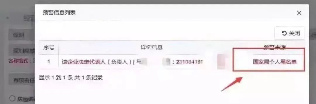 下图的这个就是个典型,注册公司的时候,填进去身份信息,直接弹出预警“国家局黑名单”!