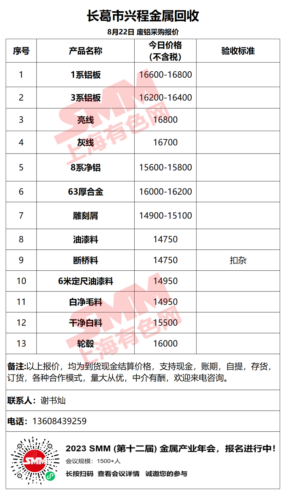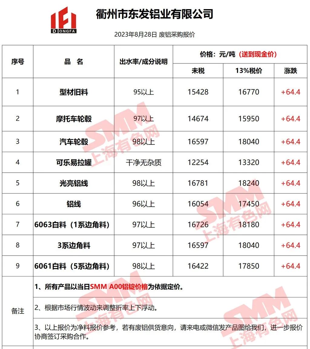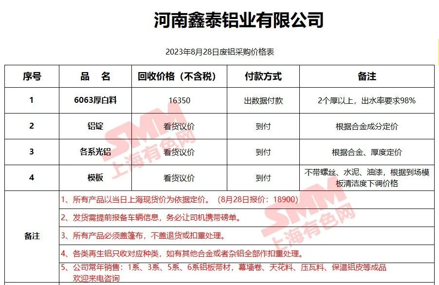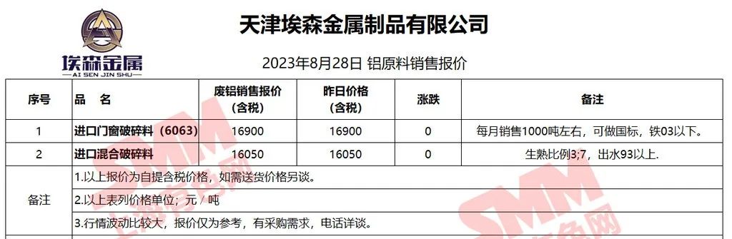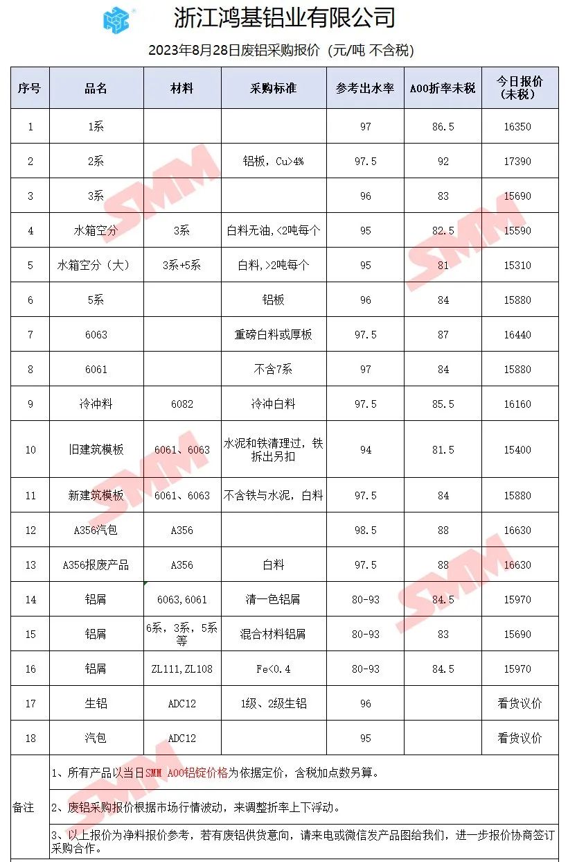 以上报价是当日截止至13:00,上海有色网(SMM)合作企业的废铝报价更新!您如需查看当日更多企业报价,欢迎下载”掌上有色“APP或扫下方二维码进入"SMM废金属万人群”