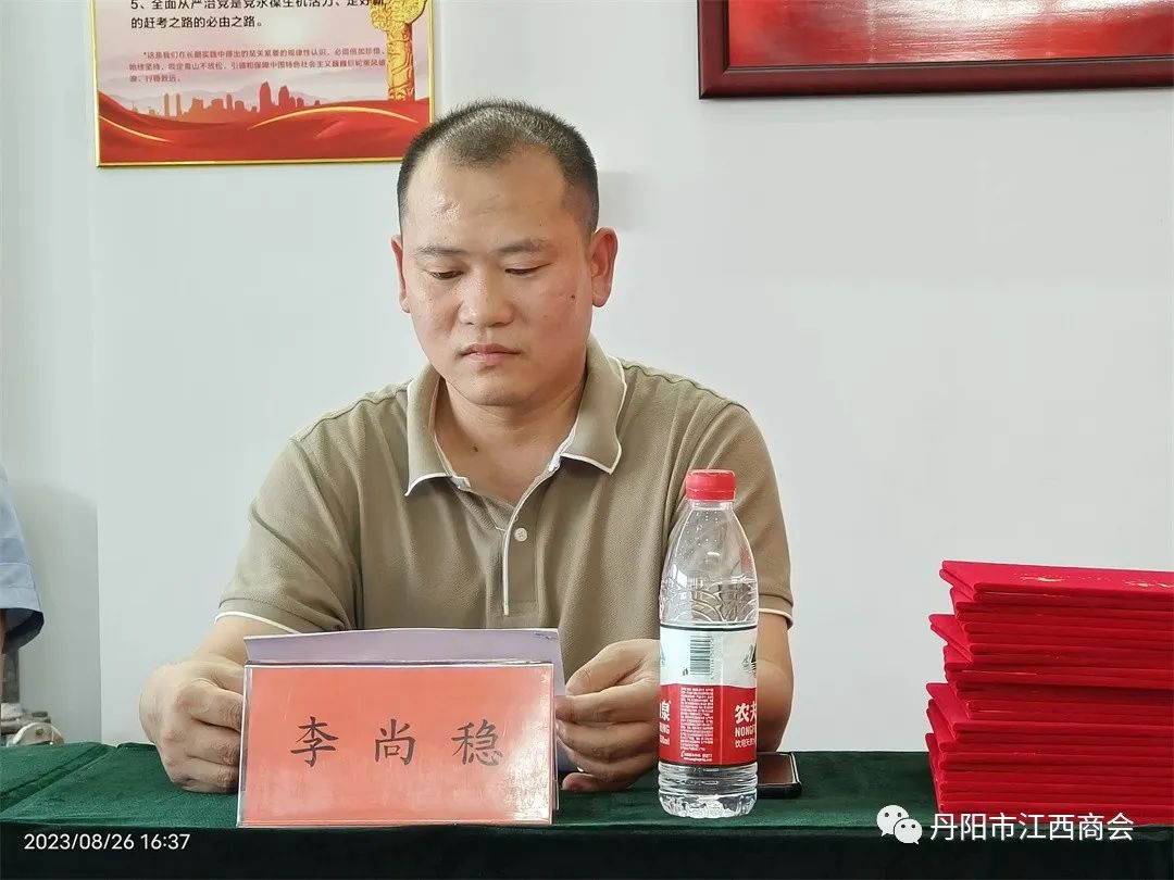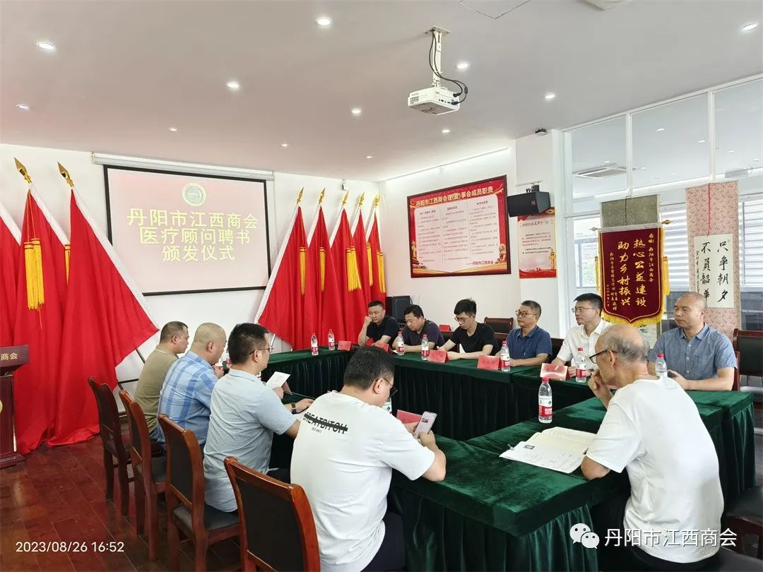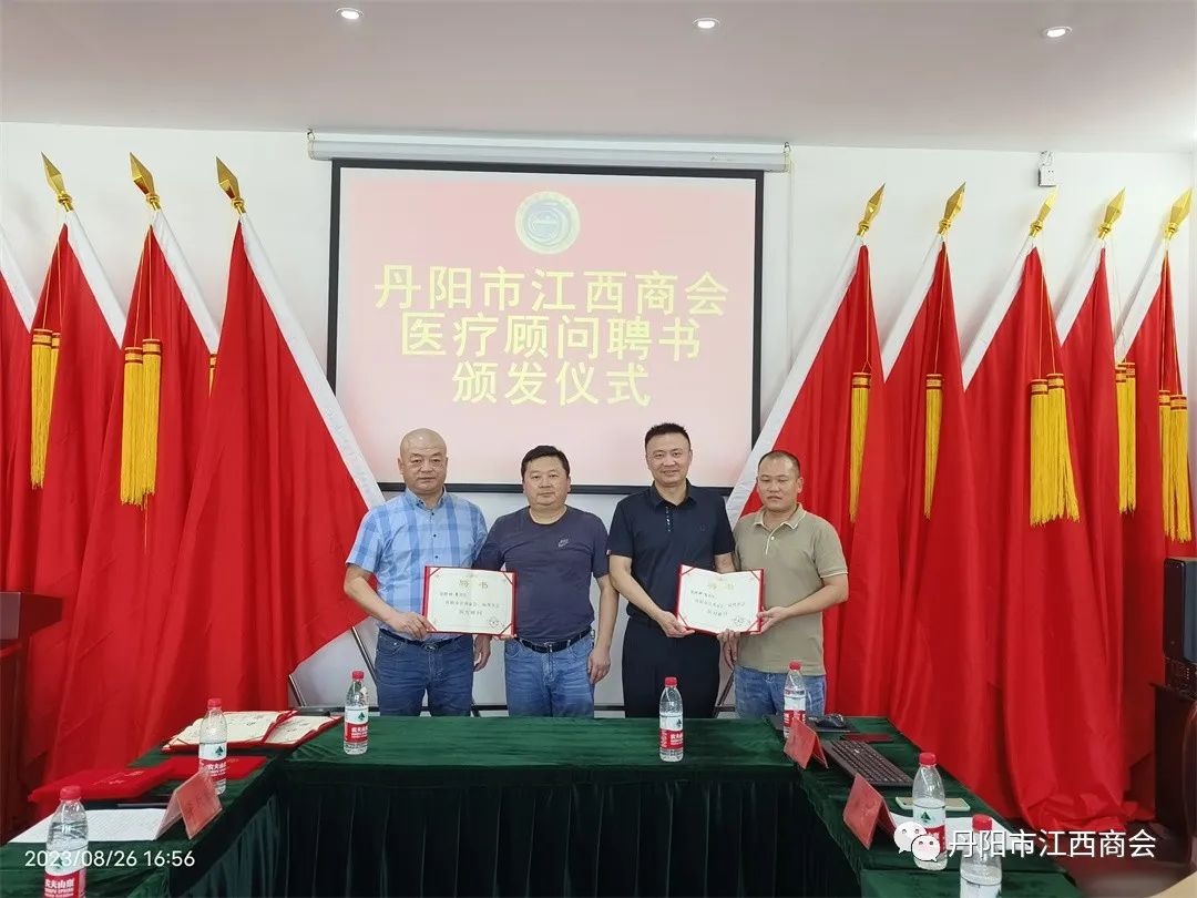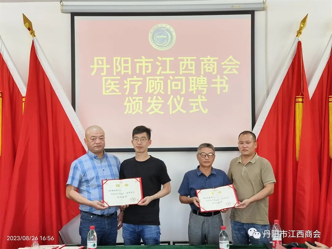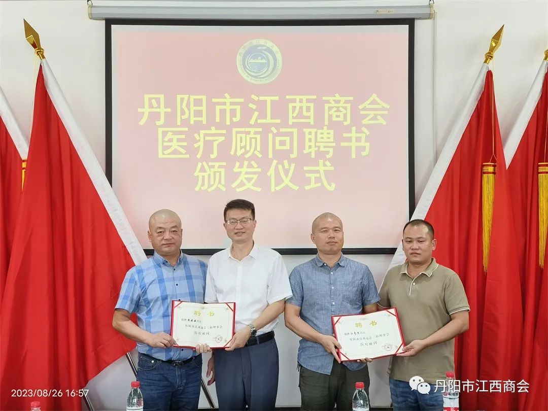 2023年8月26日下午,丹阳市江西商会举行医疗顾问聘书颁发仪式,参加仪式的有:丹阳市江西商会执行会长陈招辉、党支部书记、秘书长刘伟、常务副会长兼医疗顾问部部长李尚稳、常务副会长张万平以及敬聘的镇江、丹阳各大医院江西籍主任医师。