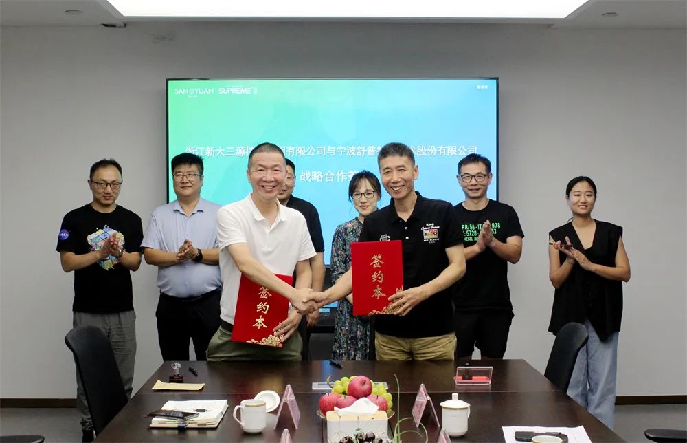 8月22日下午,三源控股集团与舒普智能合作签约仪式在六楼会议室举行。三源集团董事长童云洪,总经理钱竞,和源服饰总经理魏建新,副总经理童烨,舒普智能董事长罗千,舒普智能常务副总经理段时红,舒普智能董事长助理高飞,舒普智能研发总监刘志军等共同出席见证本次签约仪式。