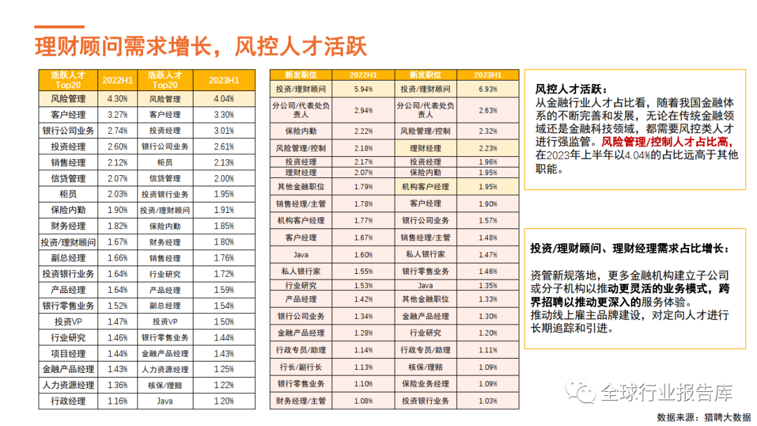 今天分享的是金融行业系列深度研究报告:《2023年上半年金融行业人才趋势观察报告》。(报告出品方:猎聘)