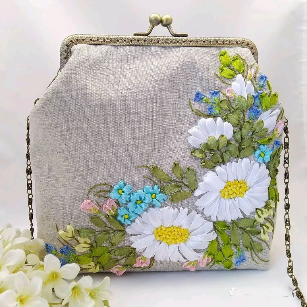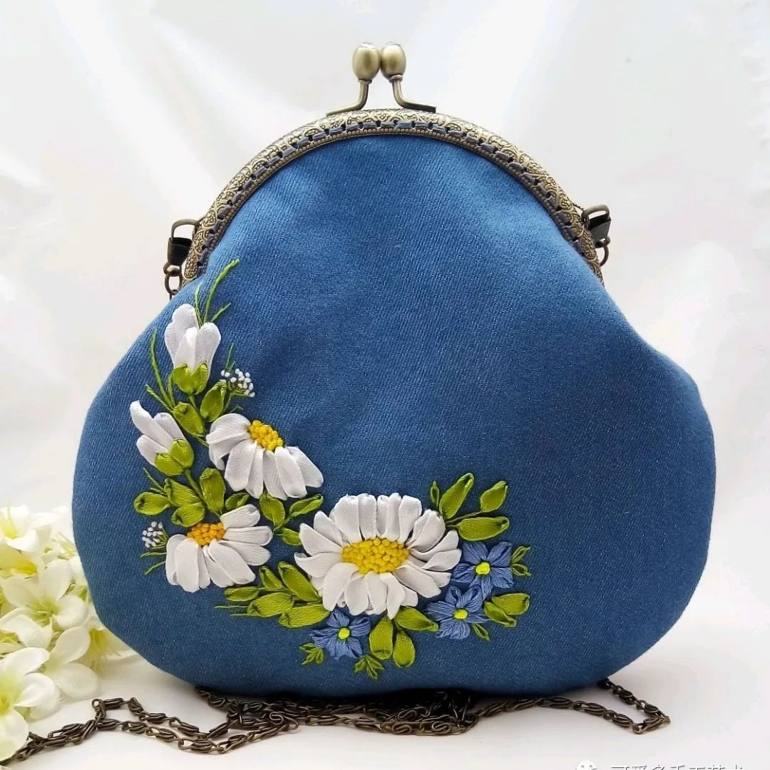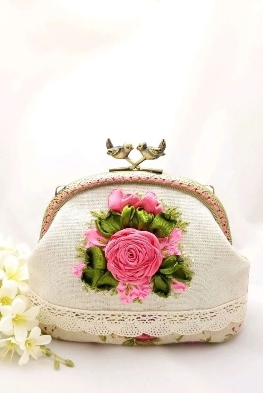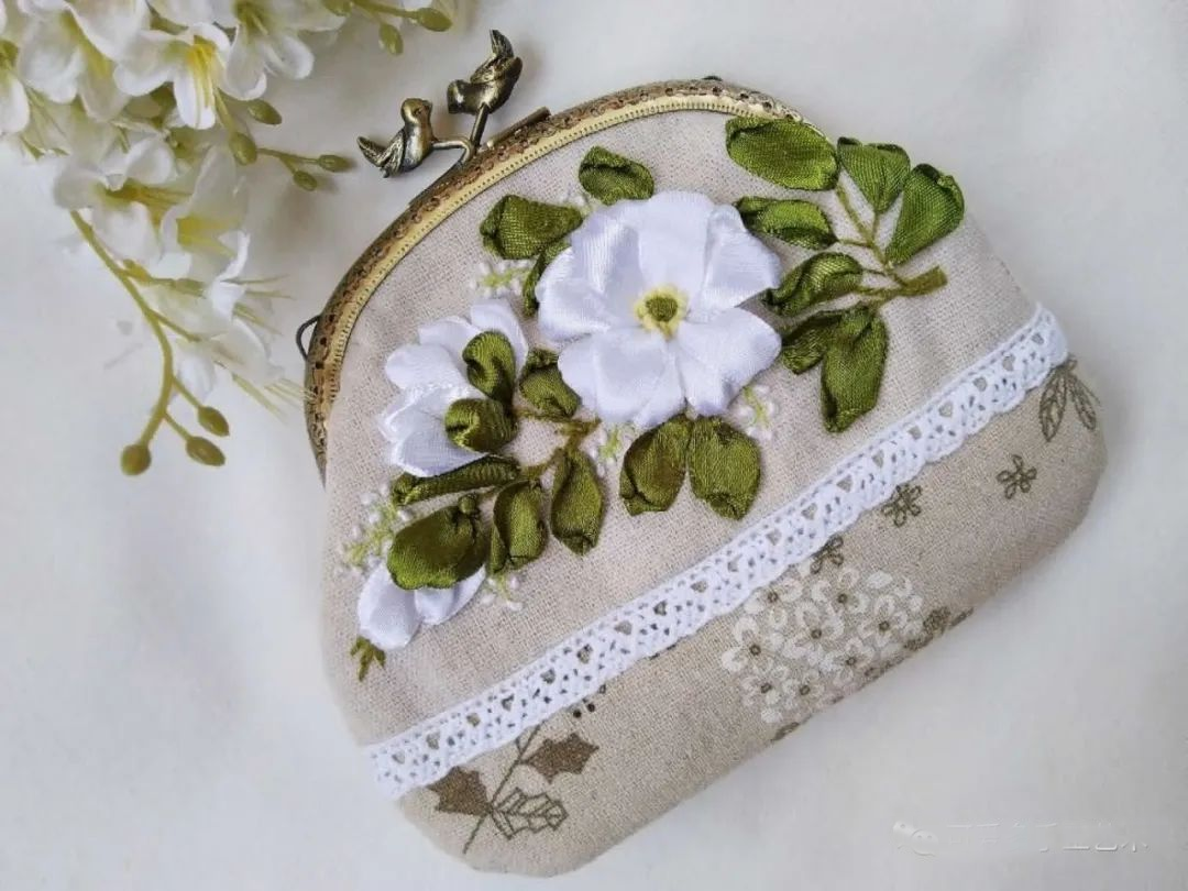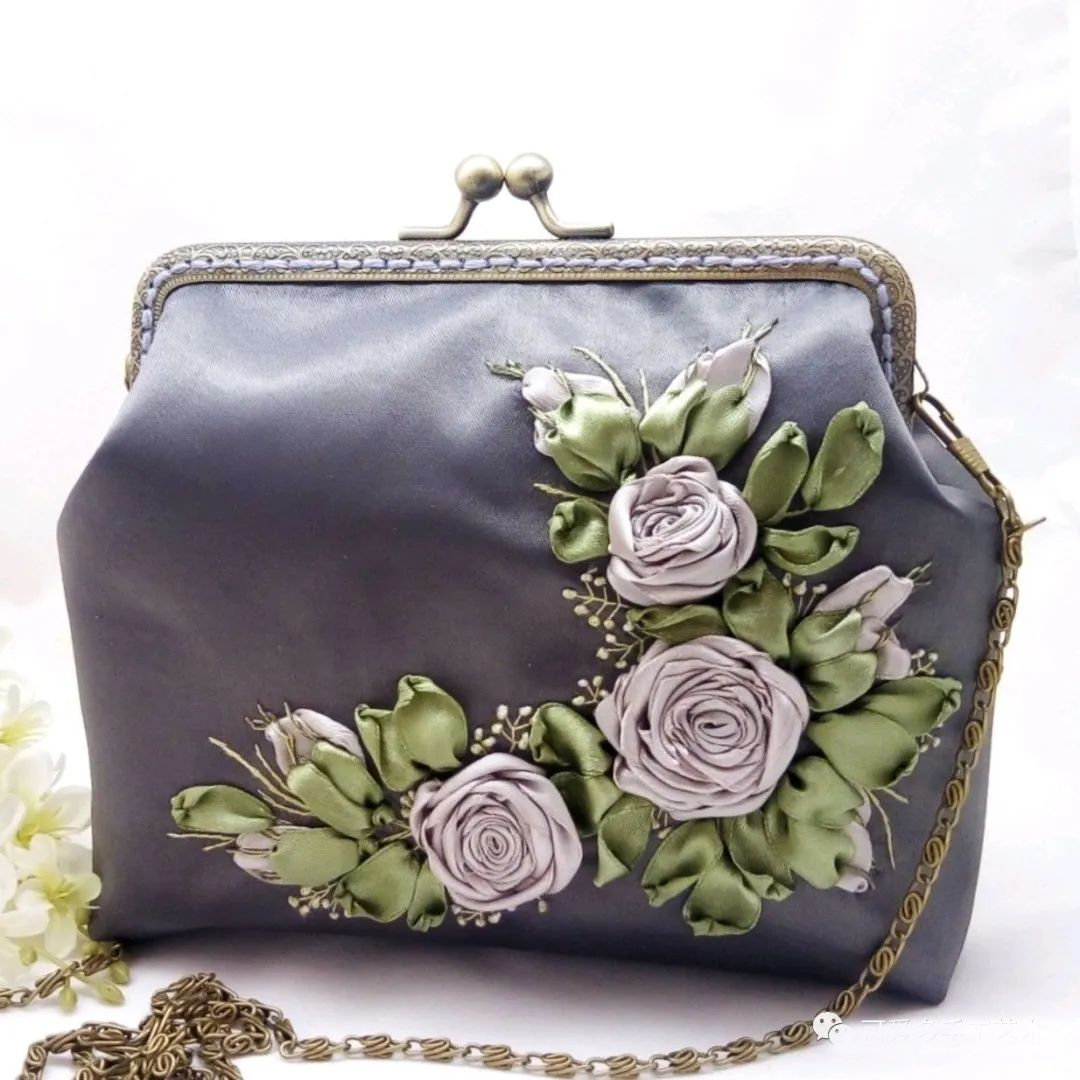 除了拉链的手袋或零钱包,口金包的优雅复古系设计也能迷倒一片,即使使用一块纯色的布,上面什么都不需要装饰,只要装上一个口金配件,包包立马变得惊艳起来。如果学几种丝带绣,在上面绣满各种的丝带花,这样的包包,都不舍得拿出去用了。
