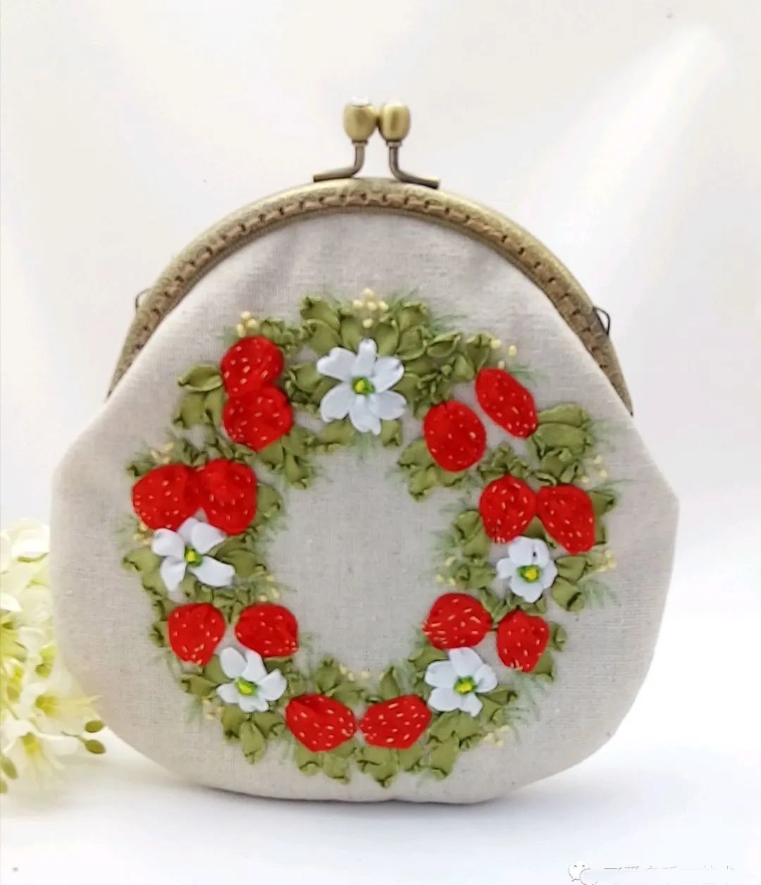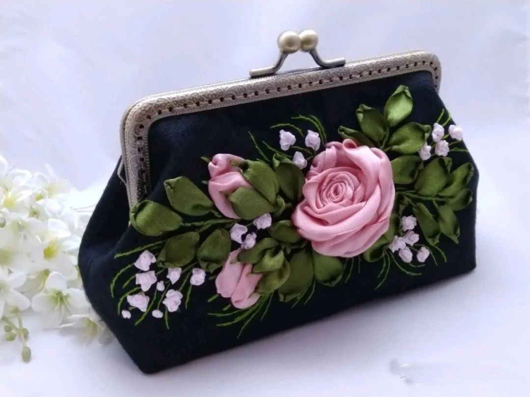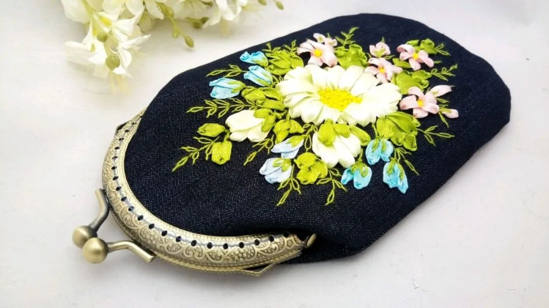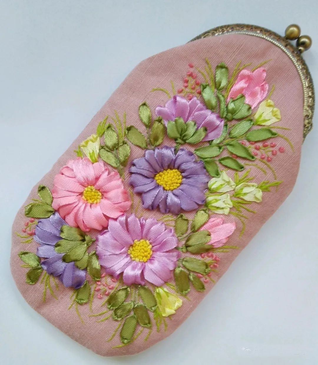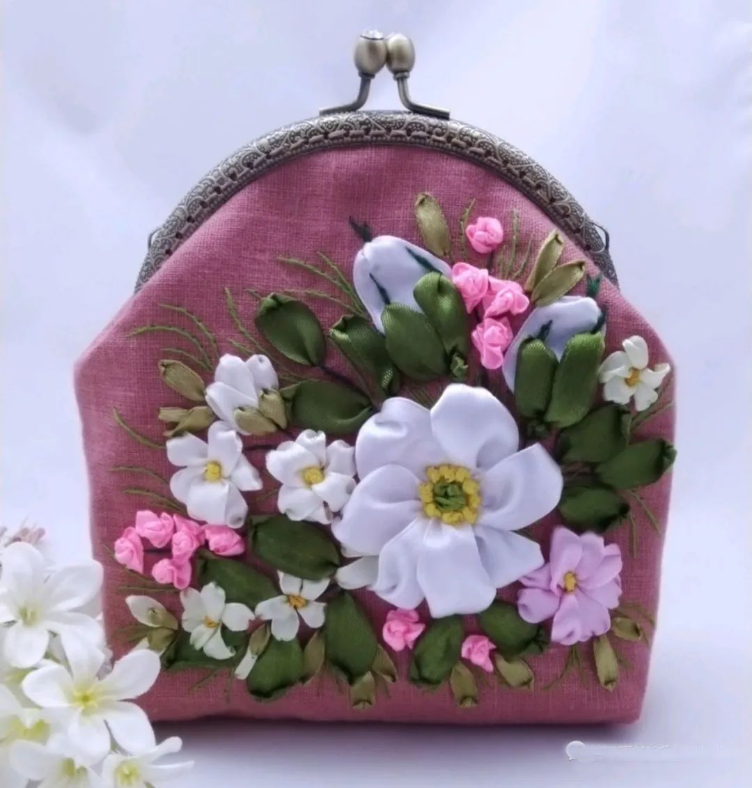 除了拉链的手袋或零钱包,口金包的优雅复古系设计也能迷倒一片,即使使用一块纯色的布,上面什么都不需要装饰,只要装上一个口金配件,包包立马变得惊艳起来。如果学几种丝带绣,在上面绣满各种的丝带花,这样的包包,都不舍得拿出去用了。
