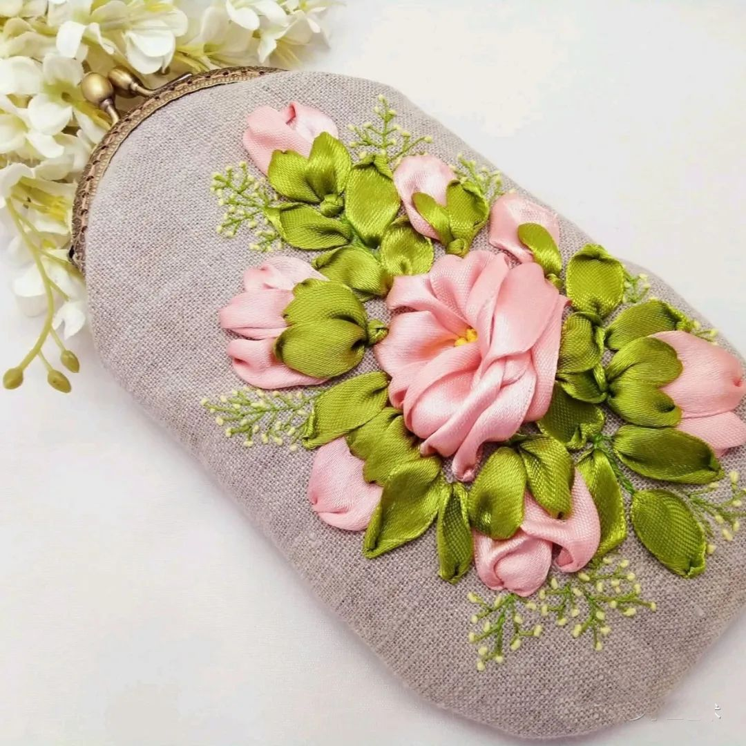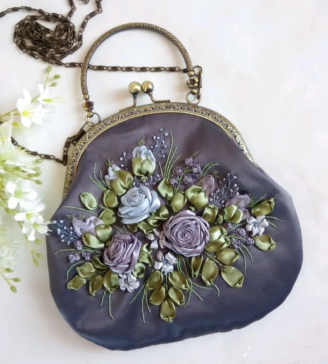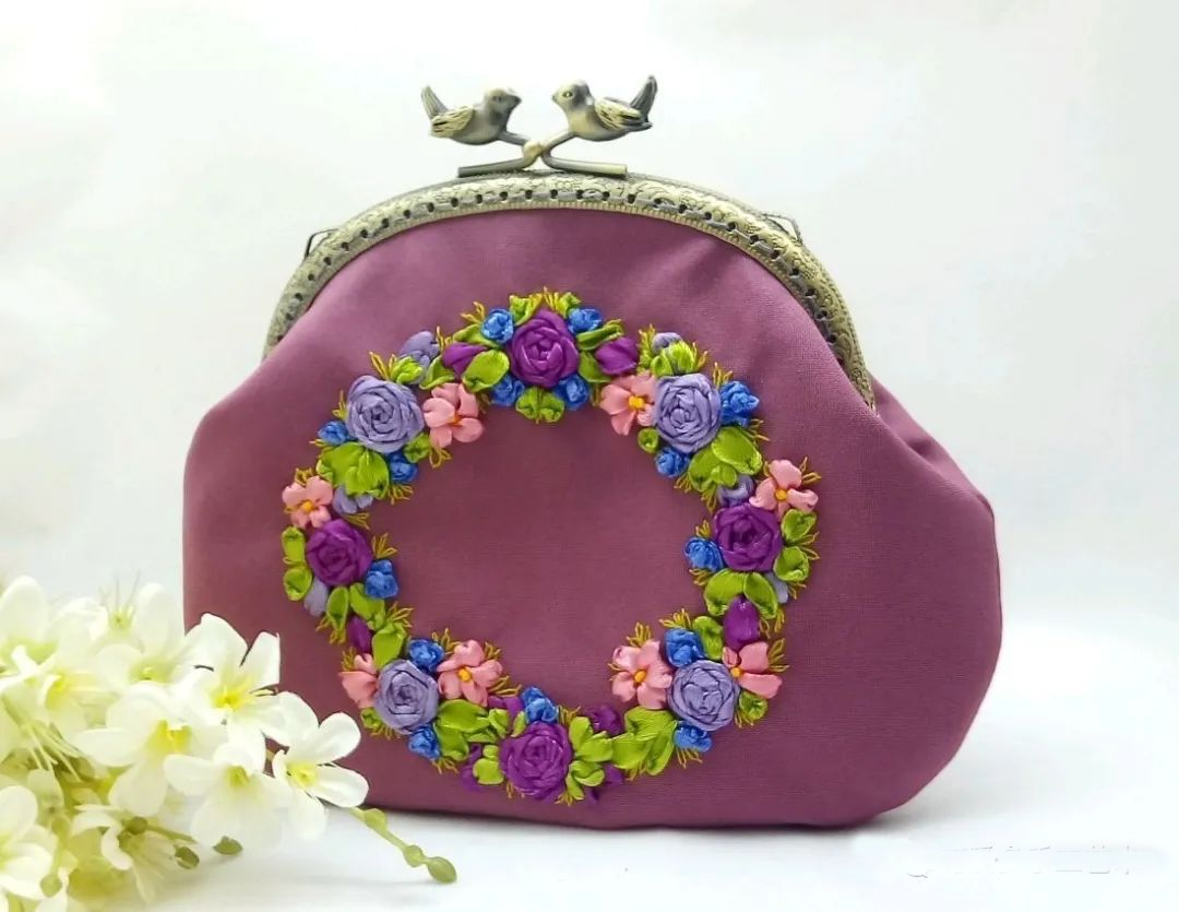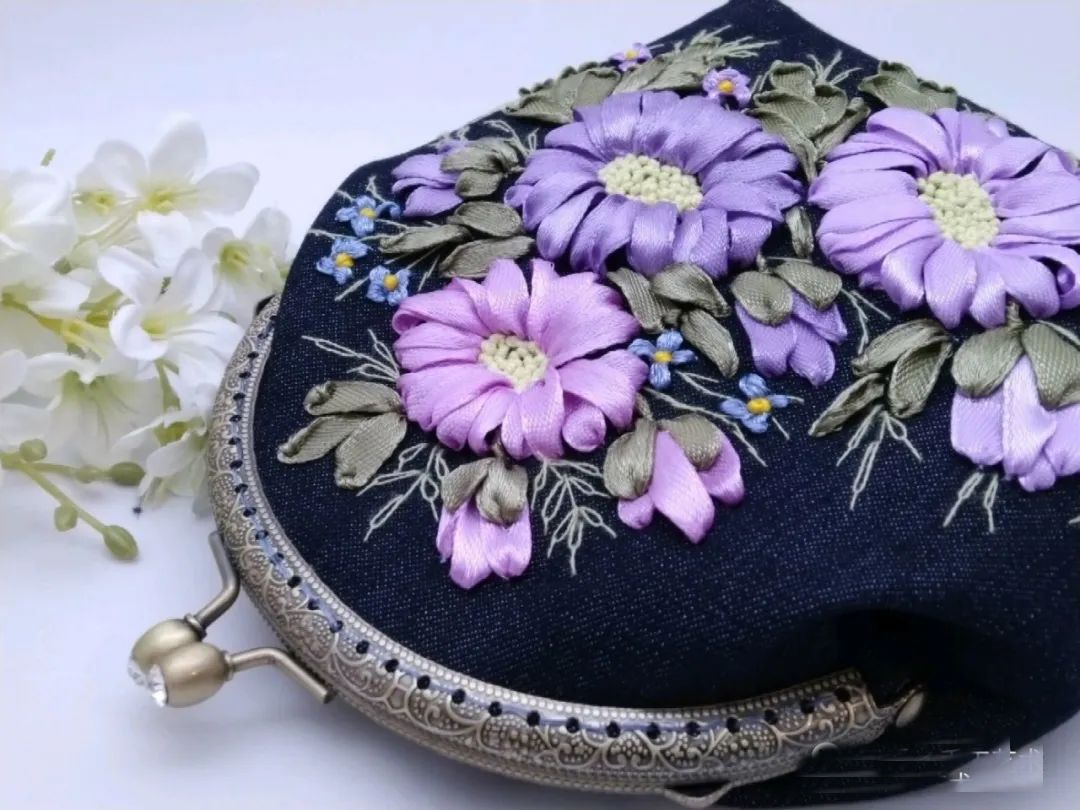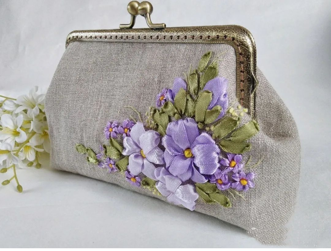 除了拉链的手袋或零钱包,口金包的优雅复古系设计也能迷倒一片,即使使用一块纯色的布,上面什么都不需要装饰,只要装上一个口金配件,包包立马变得惊艳起来。如果学几种丝带绣,在上面绣满各种的丝带花,这样的包包,都不舍得拿出去用了。