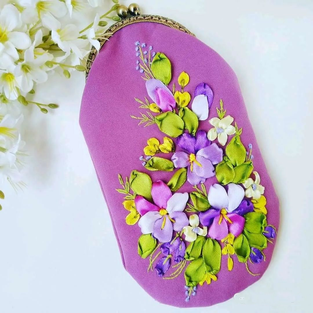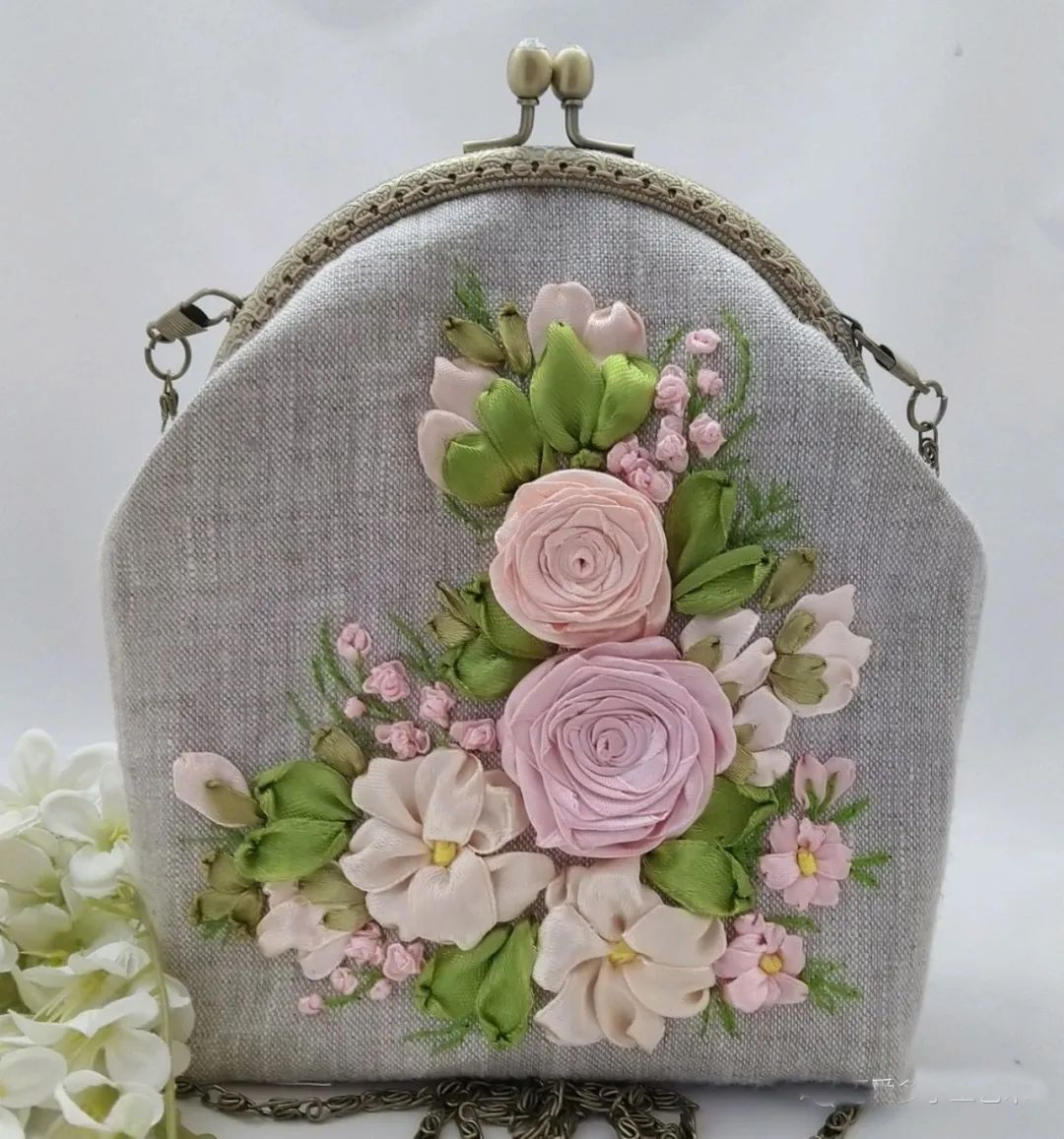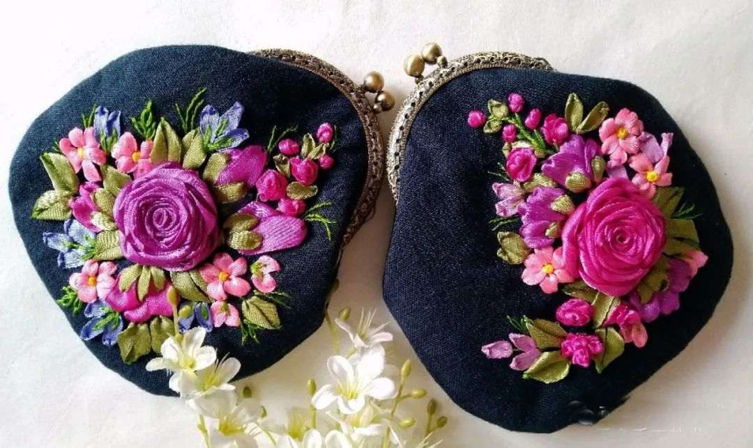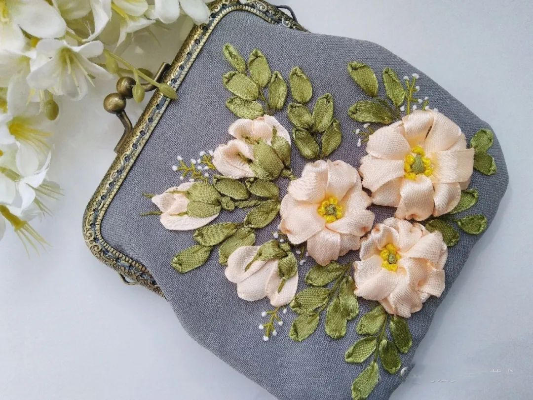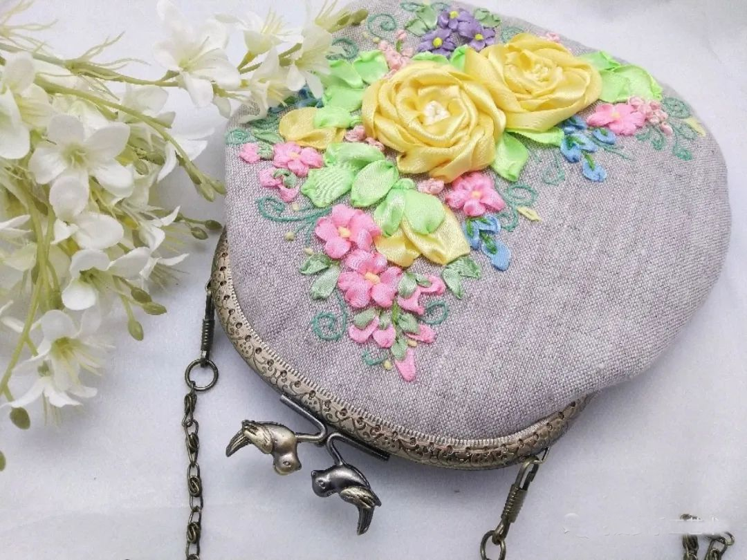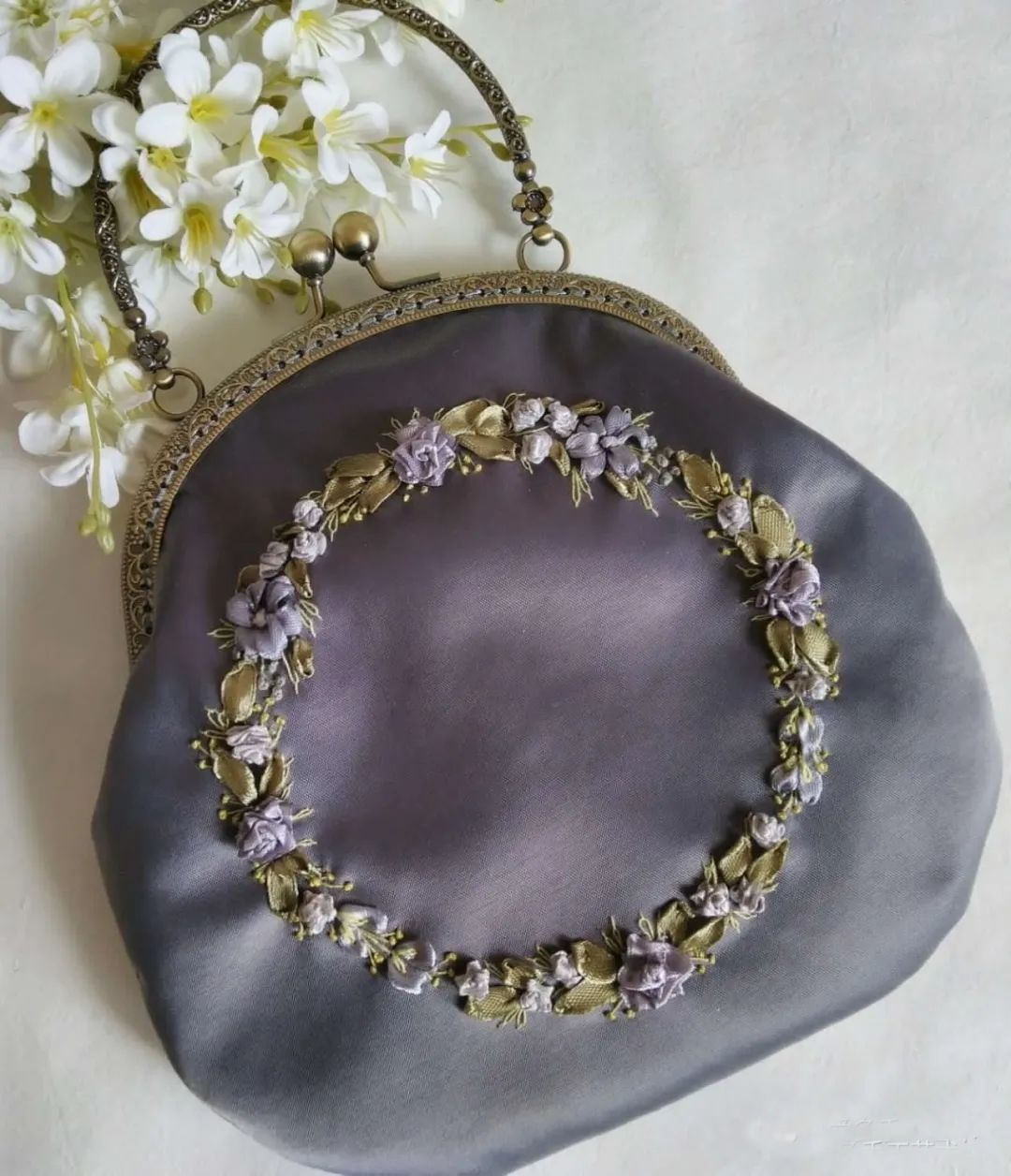 除了拉链的手袋或零钱包,口金包的优雅复古系设计也能迷倒一片,即使使用一块纯色的布,上面什么都不需要装饰,只要装上一个口金配件,包包立马变得惊艳起来。如果学几种丝带绣,在上面绣满各种的丝带花,这样的包包,都不舍得拿出去用了。
