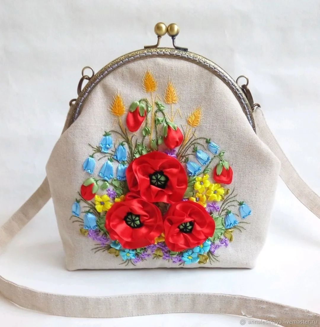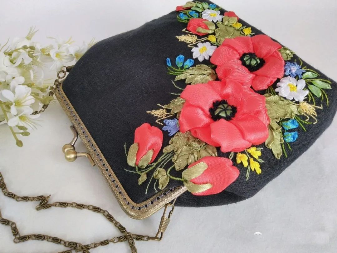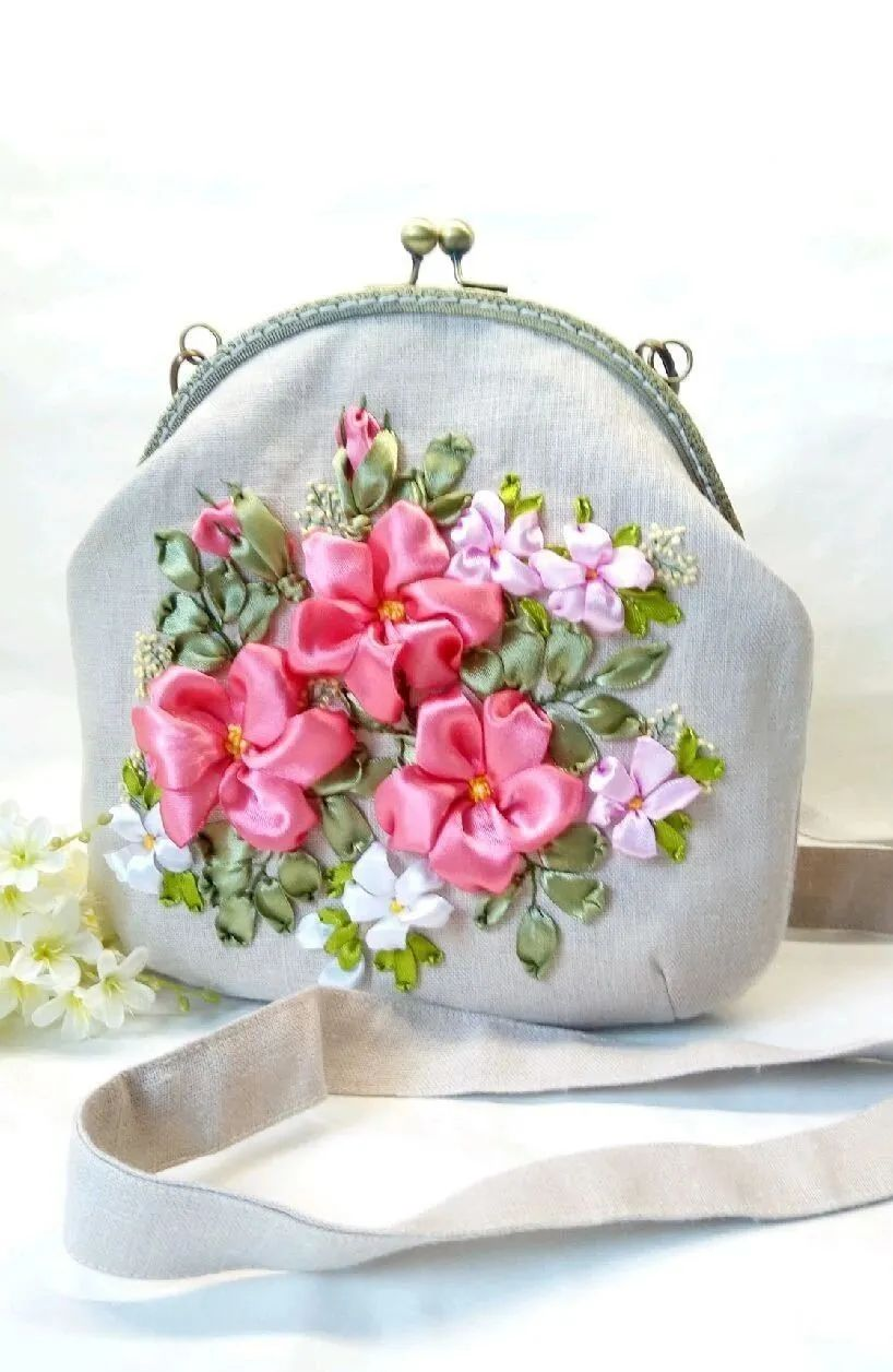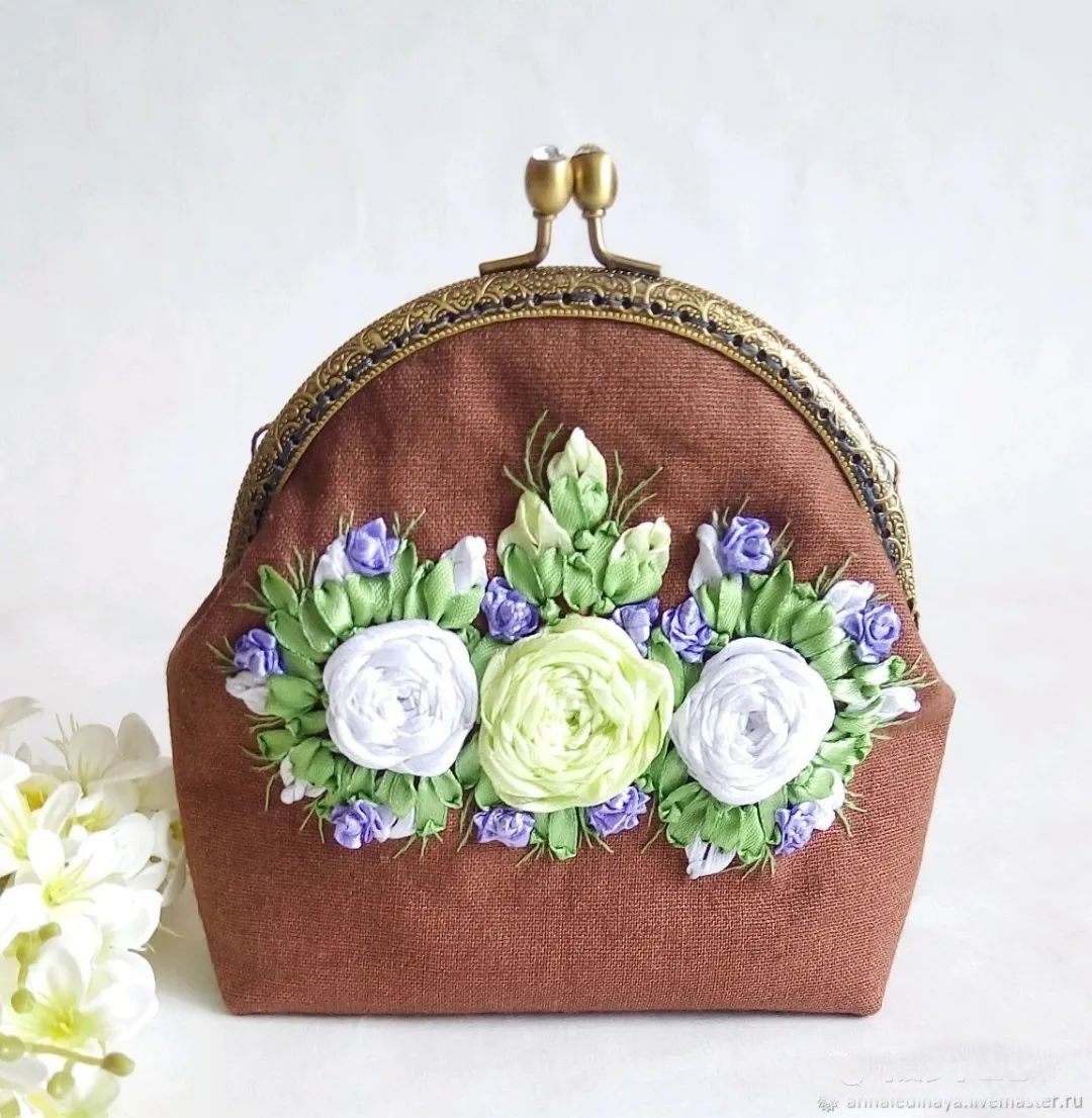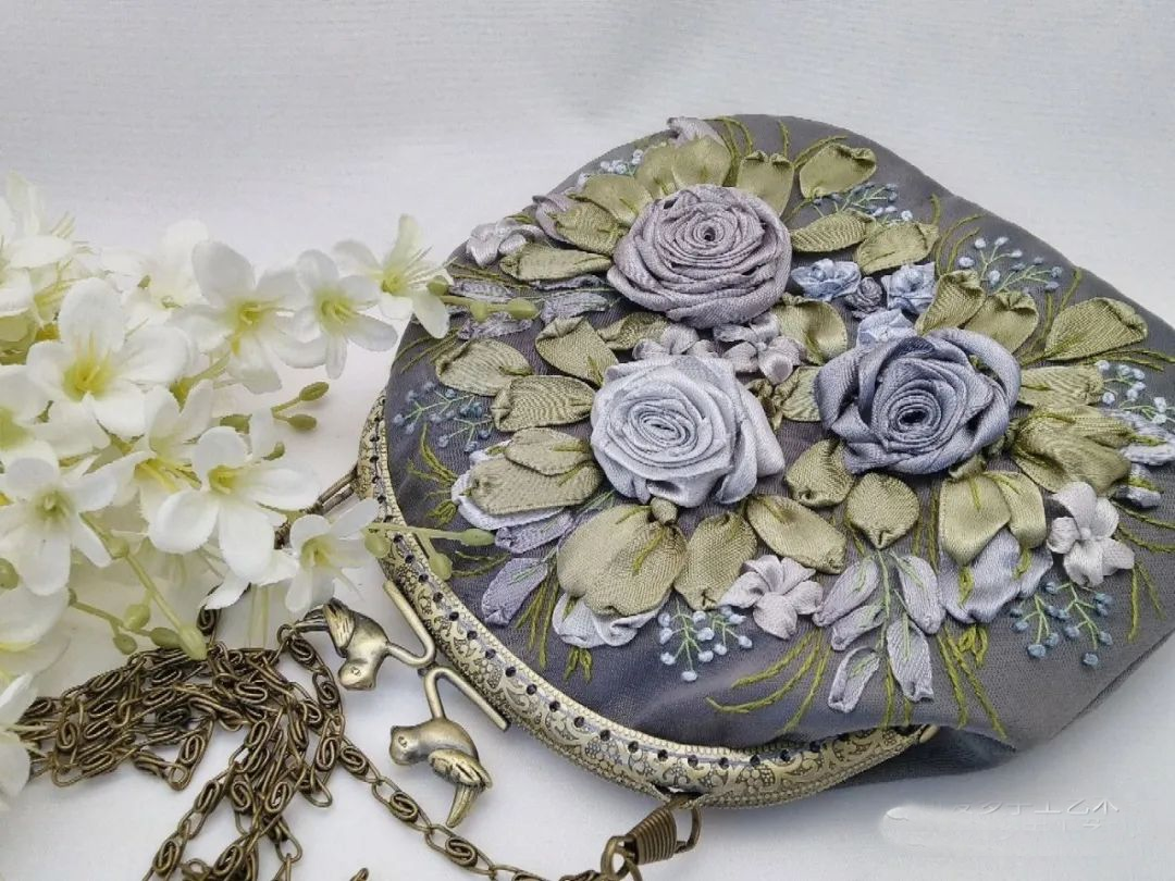 除了拉链的手袋或零钱包,口金包的优雅复古系设计也能迷倒一片,即使使用一块纯色的布,上面什么都不需要装饰,只要装上一个口金配件,包包立马变得惊艳起来。如果学几种丝带绣,在上面绣满各种的丝带花,这样的包包,都不舍得拿出去用了。