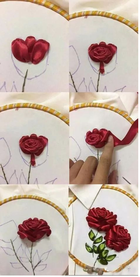 戳视频学习丝带玫瑰的绣法,玫瑰是丝带绣里用得最多的一种,只要学会了基础绣法,叶子和花即使千变万化,我们都能轻松驾驭。