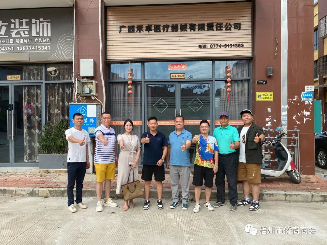8月9日、23日,梧州市侨商商会开展走访会员企业活动。广西侨商会常务理事、梧州市侨商商会会长庄建彪先生率领会员代表,先后走访梧州市侨商商会会员莫坚先生(广西禾卓医疗器械有限责任公司经理)、甘贝先生(梧州市华盛泰医疗设备有限公司总经理)、黄巍宇先生(广西梧州市宇泰科技有限公司总经理)、沈子竣先生(梧州市赫元贸易有限公司法人)。