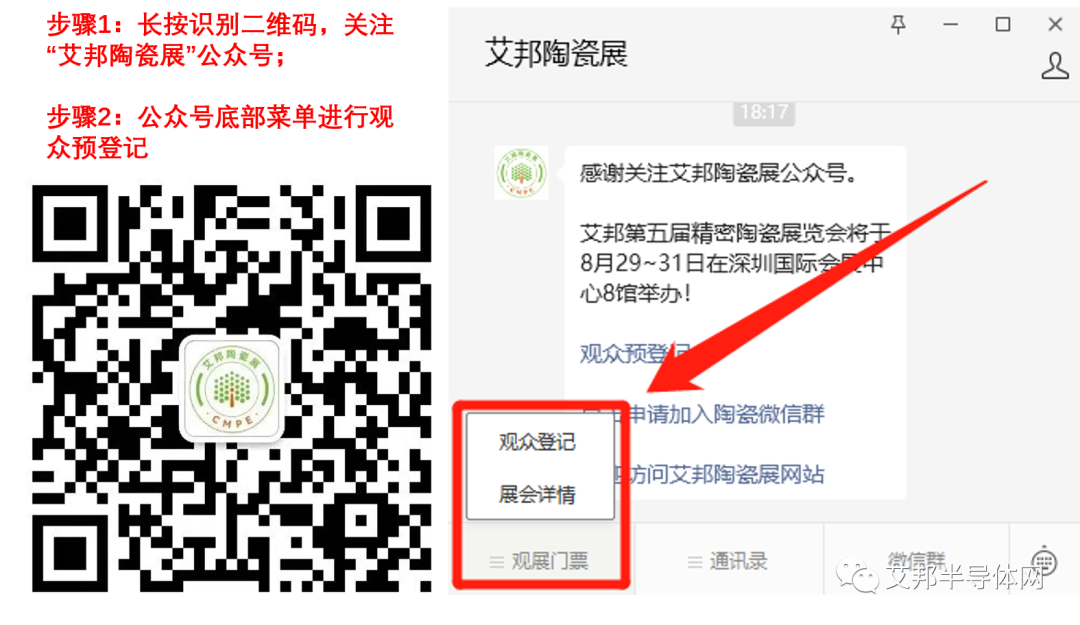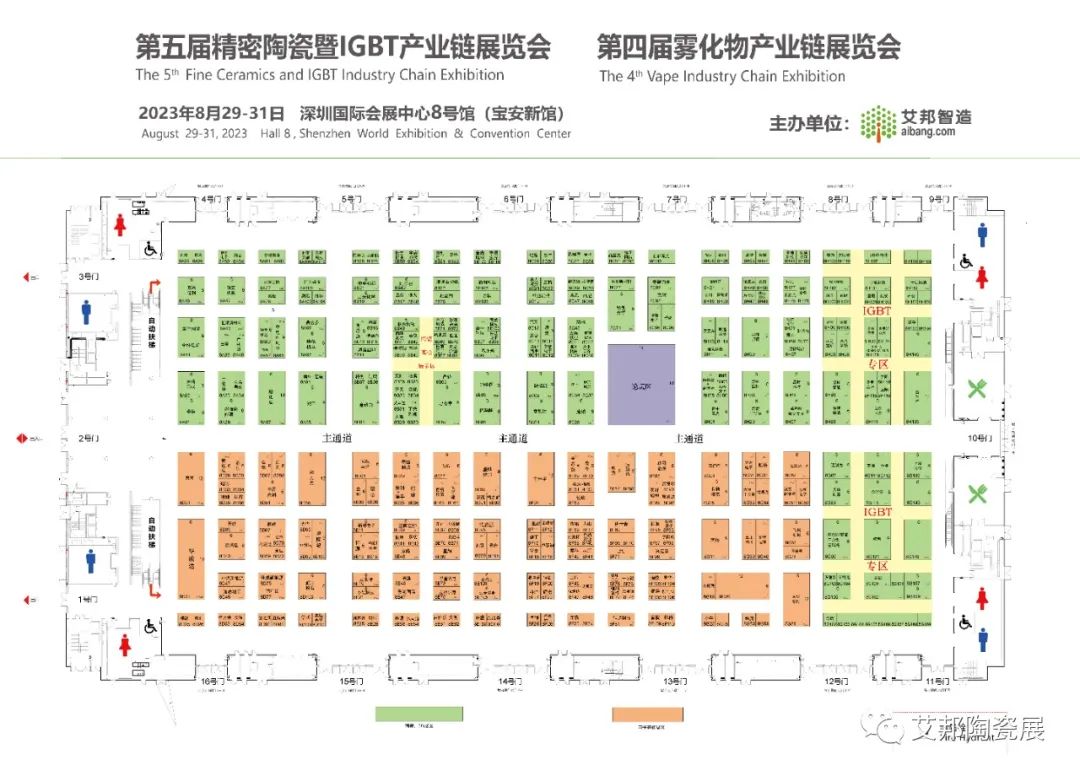 1、陶瓷器件及材料:MLCC、LTCC、HTCC、钛酸钡、碳酸钡、氧化钛、生瓷带、LTCC介质陶瓷粉体、稀土氧化物、汽车陶瓷等;2、精密陶瓷:智能穿戴陶瓷、结构陶瓷、高温陶瓷、陶瓷微珠新能源陶瓷、陶瓷轴承等;3、陶瓷基板:DPC、DBC、AMB、HTCC基板、LTCC基板、氧化铝、氮化铝、氮化硅、氧化铍粉体及基板等;4、金属材料:银粉、金粉、铜粉、镍粉、焊料、MLCC用内/外电极浆料、LTCC银浆、金浆、钨浆等;5、助剂:陶瓷和导电浆料用分散剂、黏合剂、增塑剂、絮凝剂、矿化剂、消泡剂、润滑剂等;6、设备:砂磨机、干压机、研磨机、切片机、激光设备、球磨机、喷雾造粒机、流延机、打孔机、填孔机、印刷机、叠层机、层压机、等静压机、排胶炉、烧结炉、电镀设备、网络分析仪、外观检测、超声波扫描显微镜、自动化设备、测包编带机、注塑机、模具、精雕机、喷银机、浸银机、镀膜设备、分选设备等;7、耗材:离型膜、承烧板、承烧网、发泡胶、研磨耗材、耐火材料、精密网版等。长按识别二维码,关注“艾邦陶瓷展”公众号,底部菜单进行观众预登记。