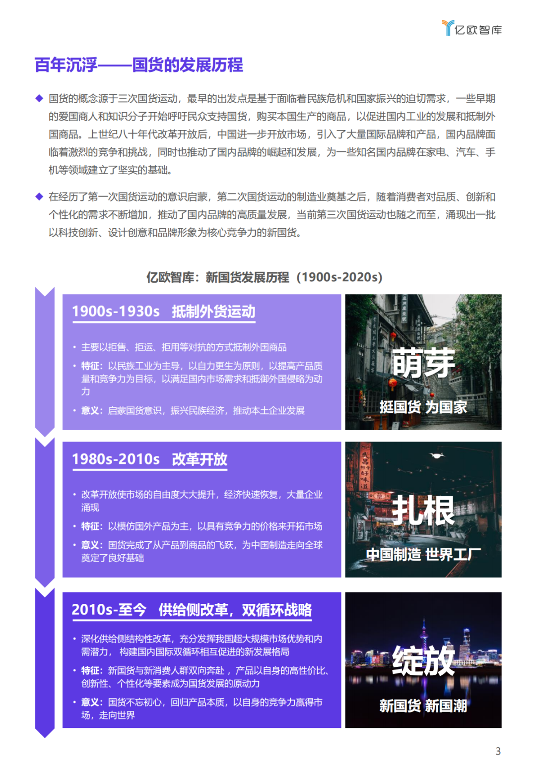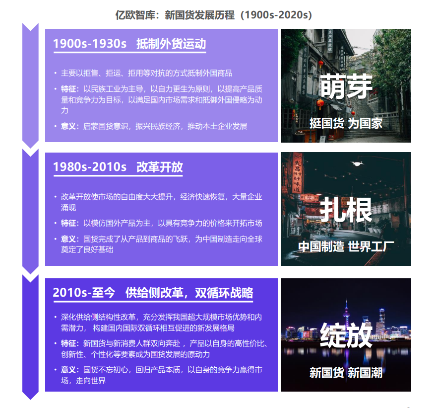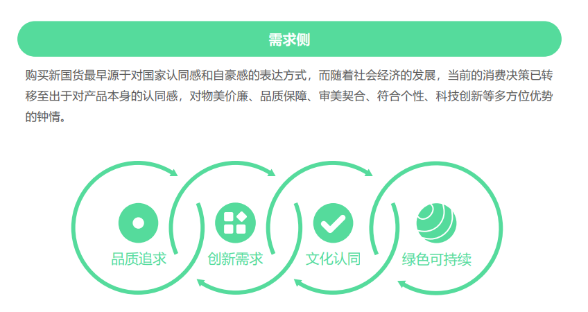在经历了第一次国货运动的意识启蒙,第二次国货运动的制造业奠基之后,随着消费者对品质、创新和个性化的需求不断增加,推动了国内品牌的高质量发展,当前第三次国货运动也随之而至,涌现出一批以科技创新、设计创意和品牌形象为核心竞争力的新国货。