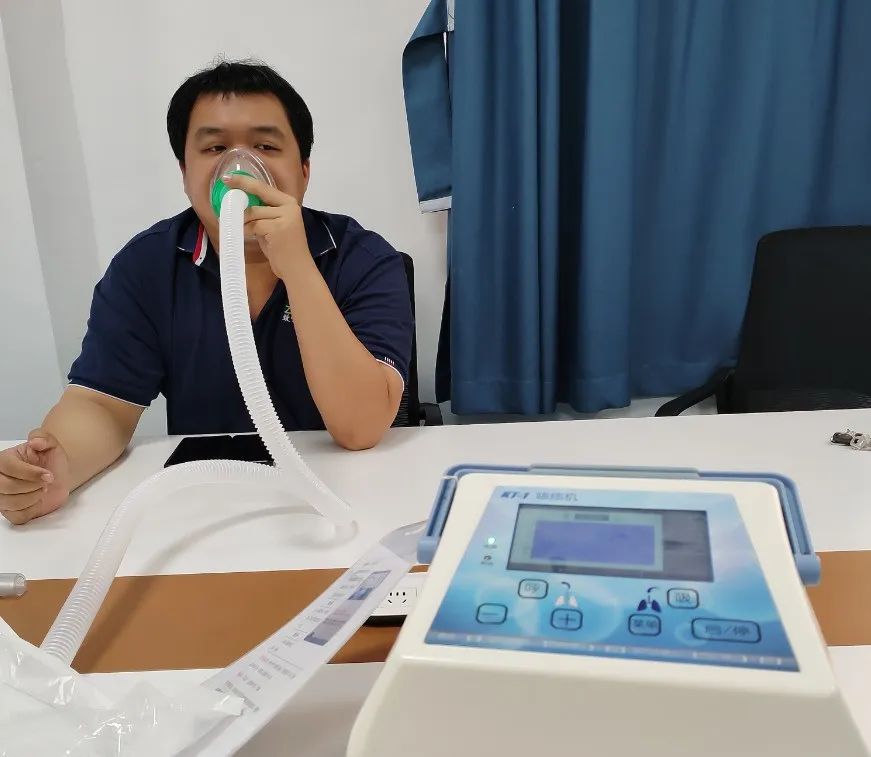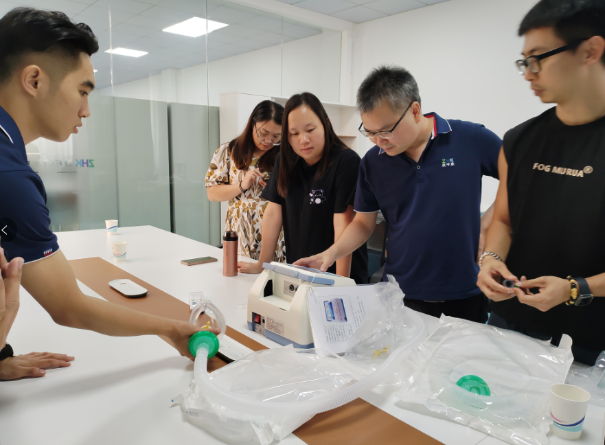 致呼康销售工程师梁工协助客户体验呼吸机