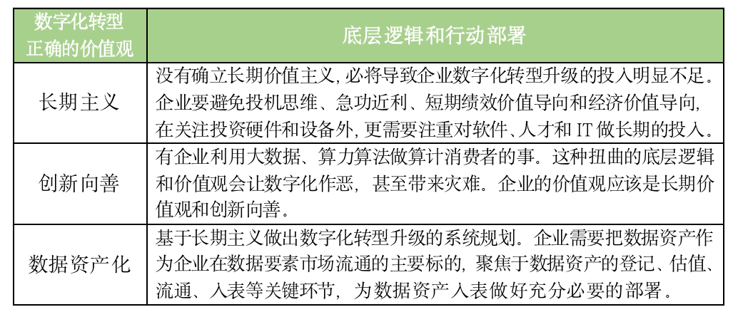 面对数字化转型升级,企业要确立正确的价值观,重新回归到底层逻辑。其最重要的就是三点:(如下表示)