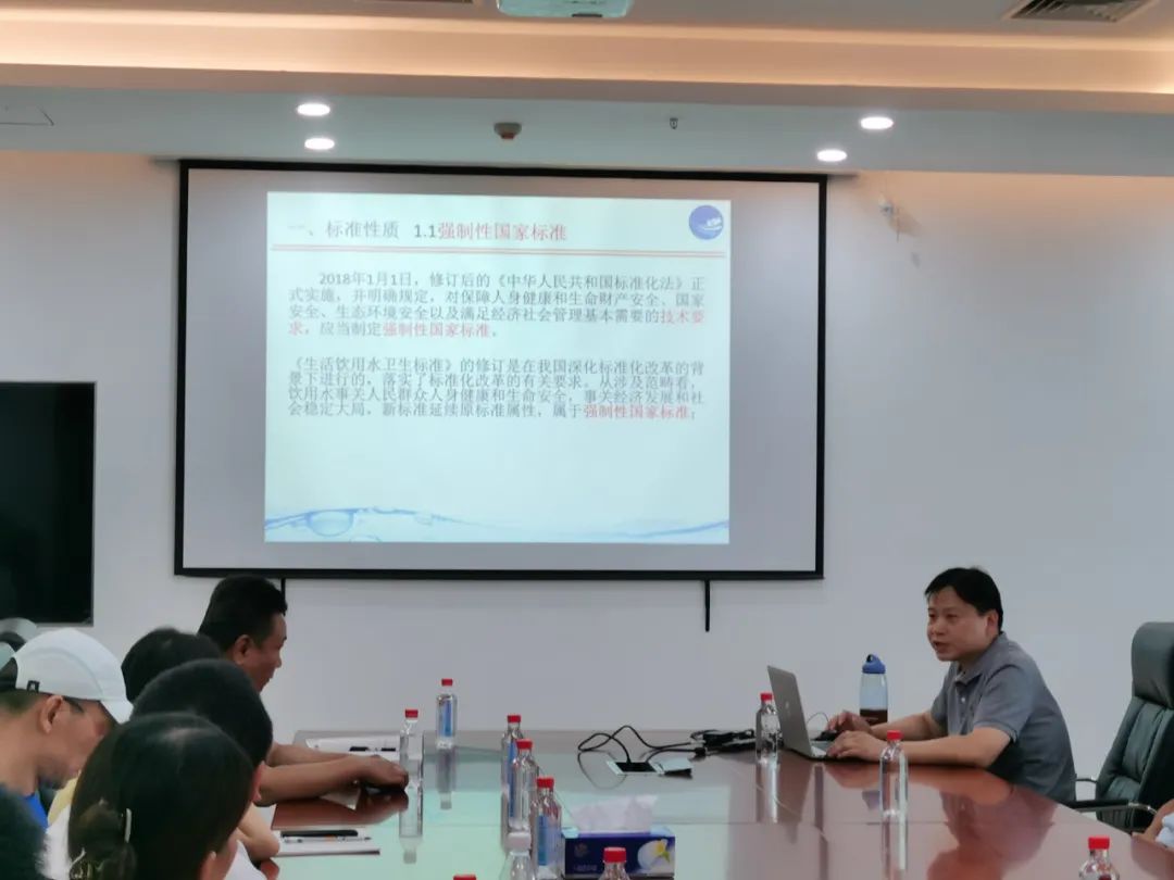 为加强水质管理工作,提高公司各单位水质管理员和检测人员对相关标准的理解和业务水平,更好满足人民群众对生活饮用水水质的要求和期盼,8月25日下午,长江水务公司组织水质监测中心、港东水厂、自来水管线所、自来水营业所、安居公司等单位的水质管理人员、化验员,开展新水质标准培训。