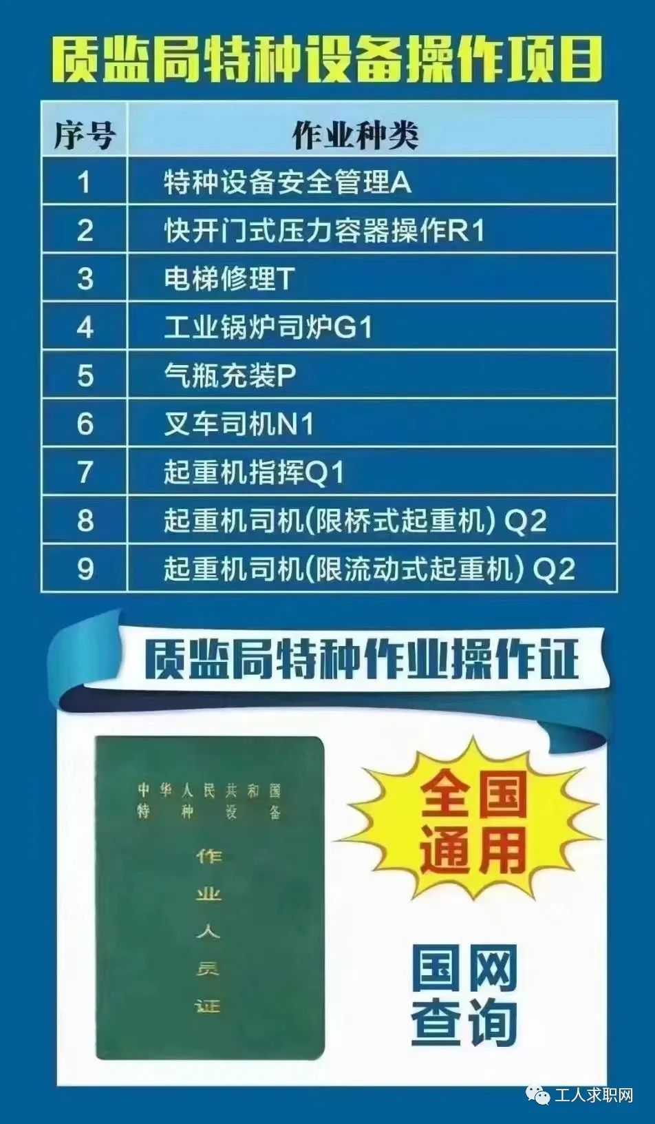 5、质监局特种工:起重、叉车、工业锅炉司机等
